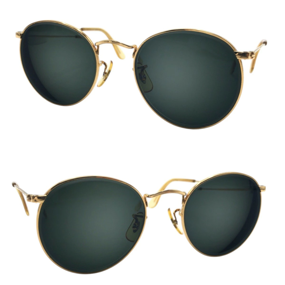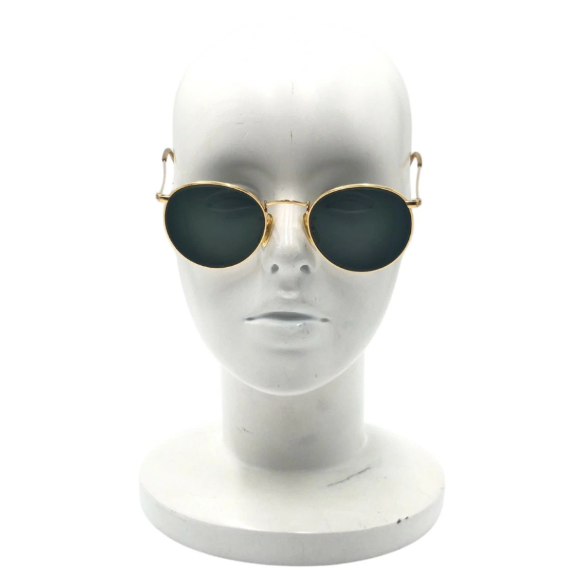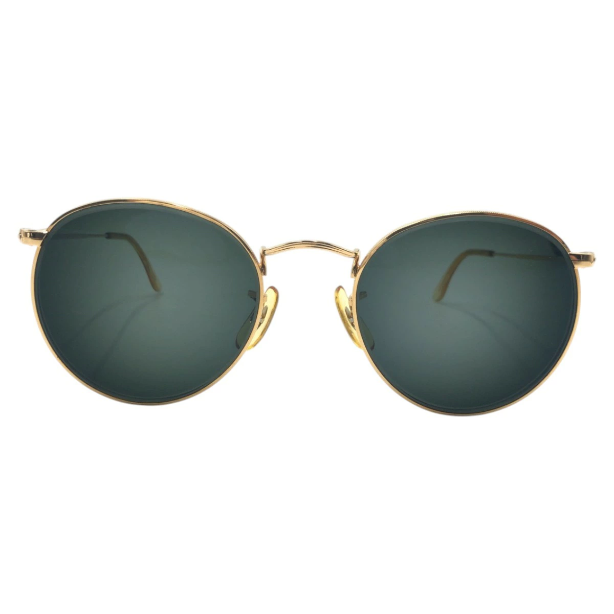Excellent condition Ray-Ban vintage B&L RAY-BAN U.S.A. gold and green metal round sunglasses for men, 501802. [Pre-owned]