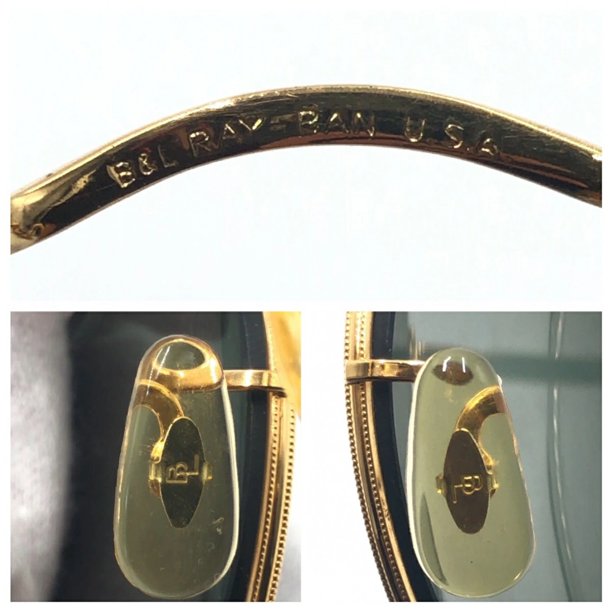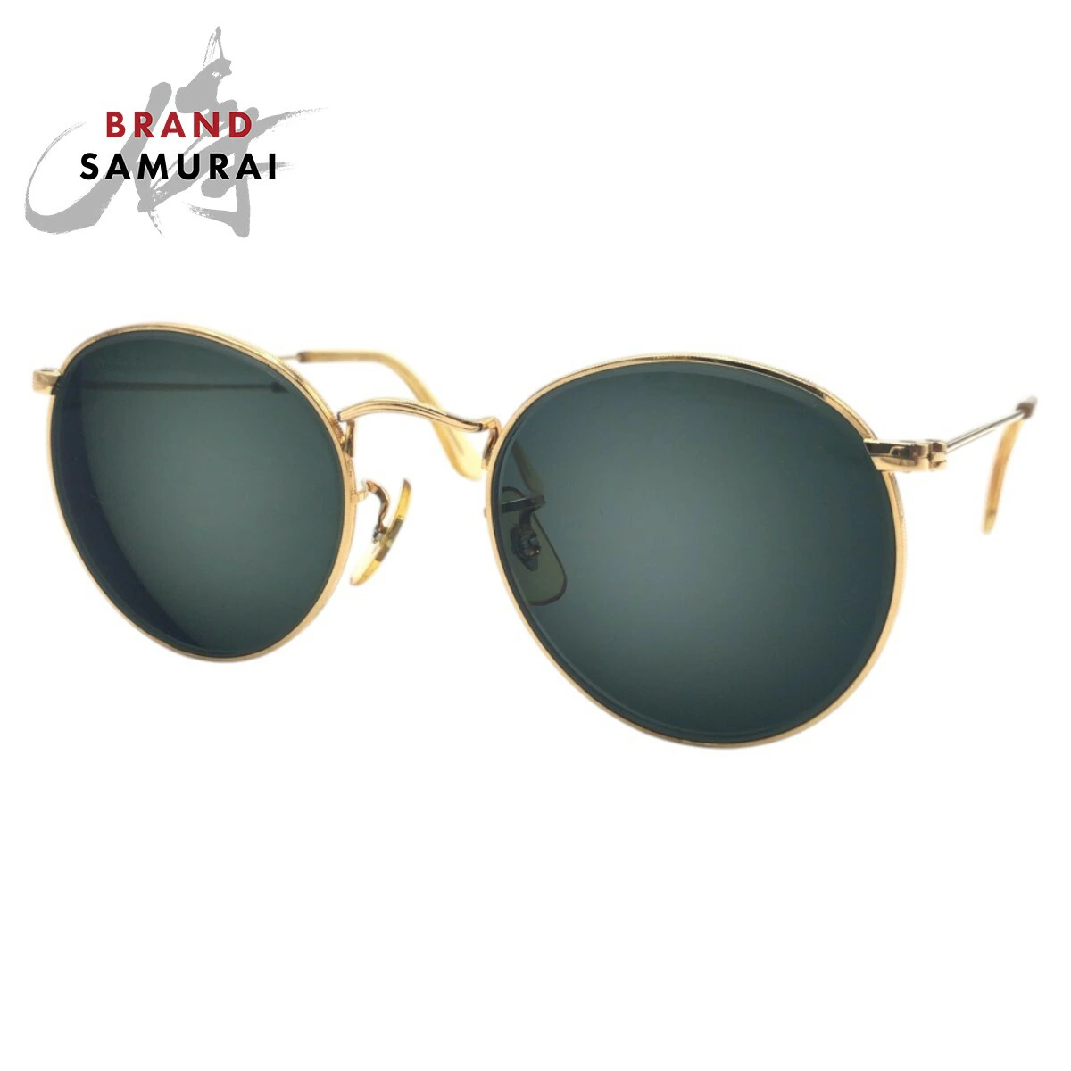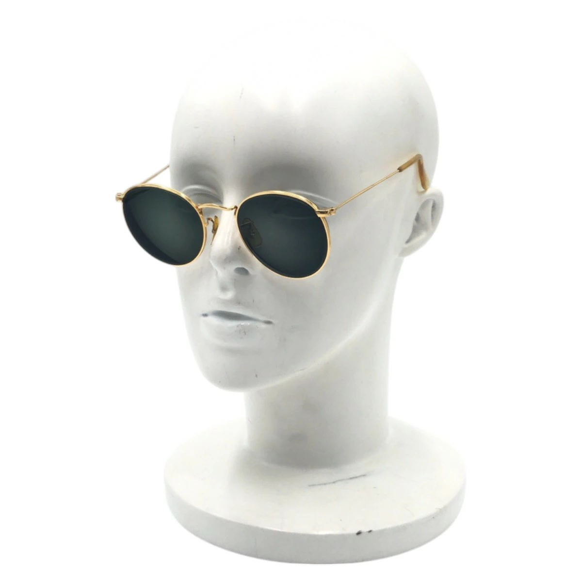 Excellent condition Ray-Ban vintage B&L RAY-BAN U.S.A. gold and green metal round sunglasses for men, 501802. [Pre-owned]