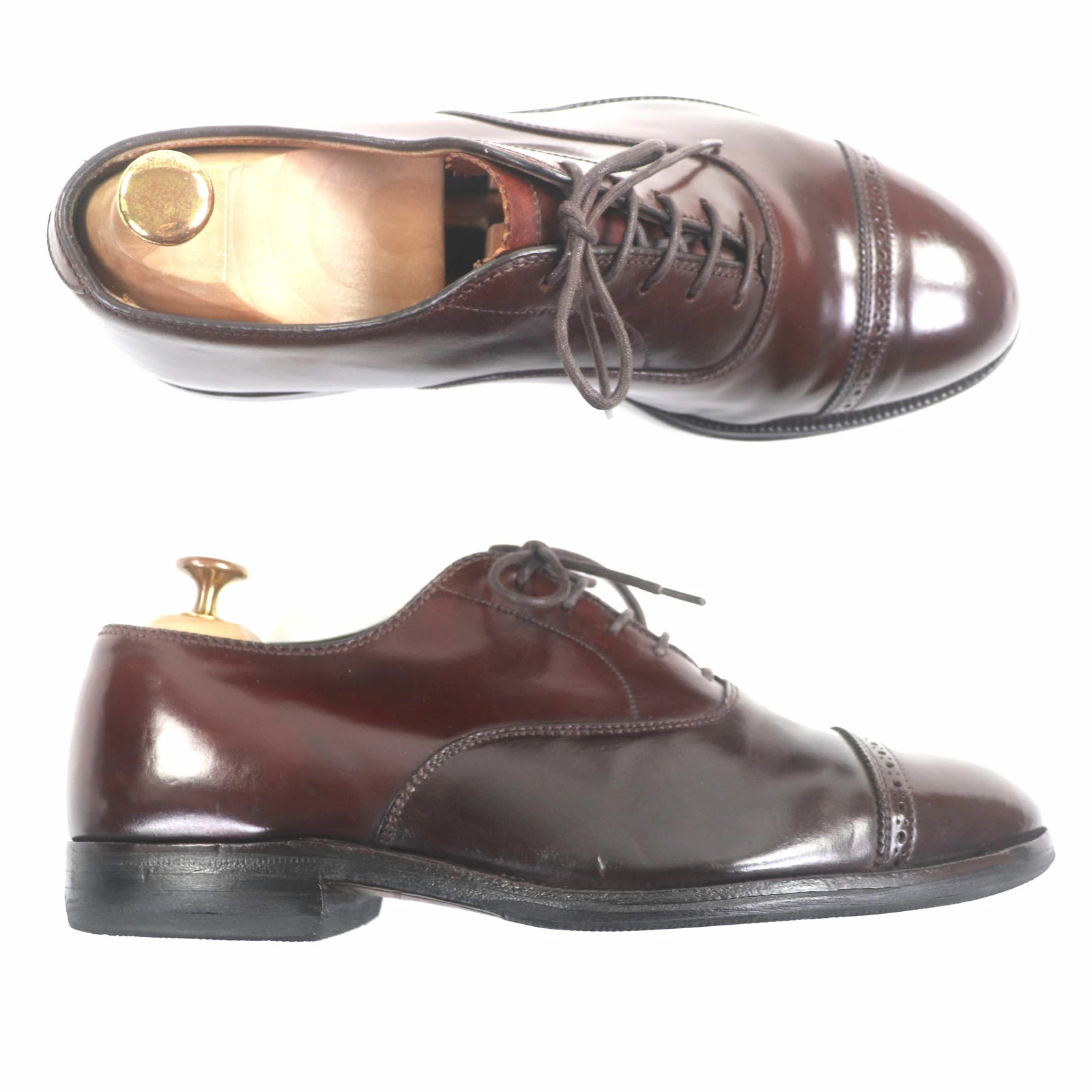 Pre-owned Alden 9015 Cordovan Punched Cap with Lace-Up Lining, Burgundy Leather, Size 8, Made in USA, Men's Business Shoes.