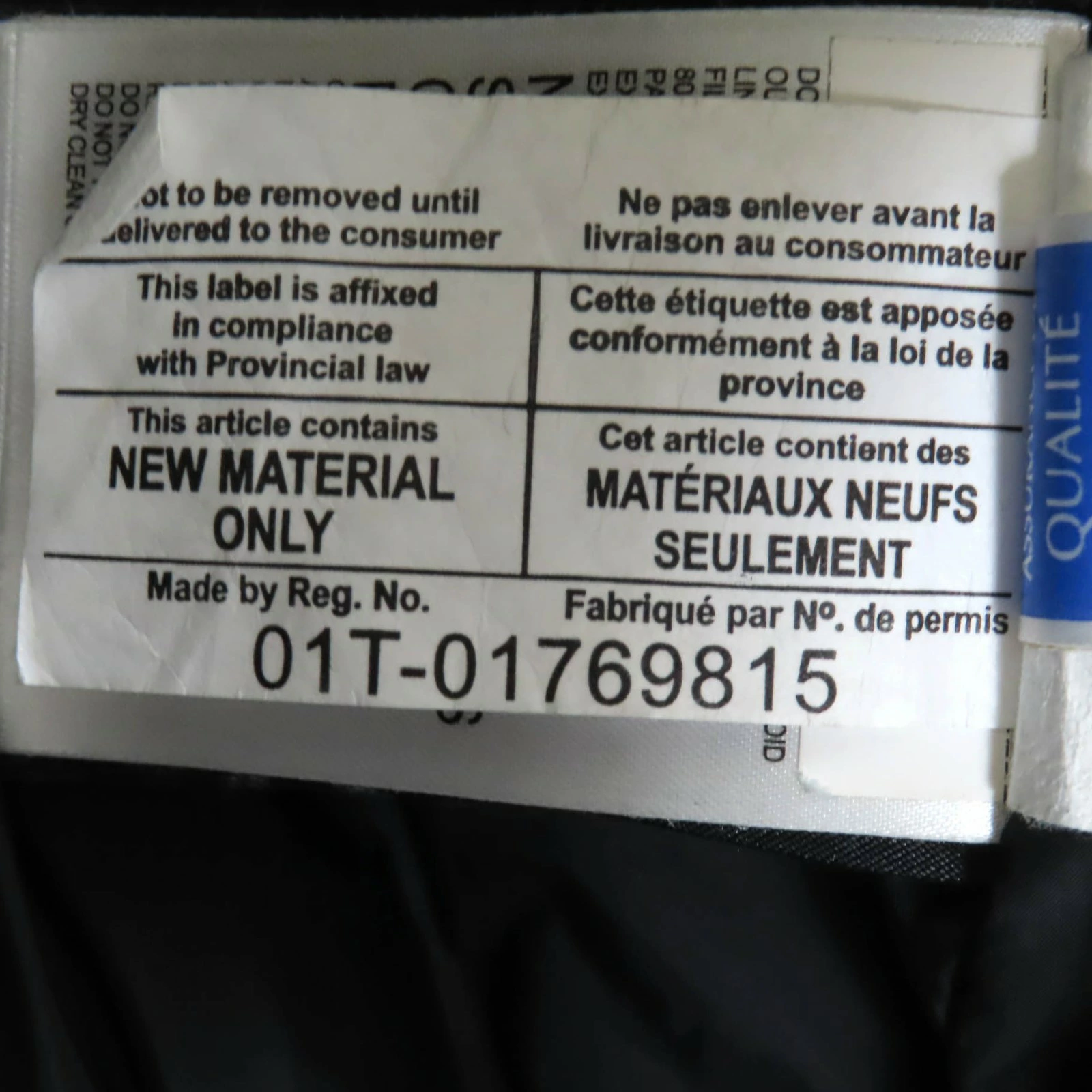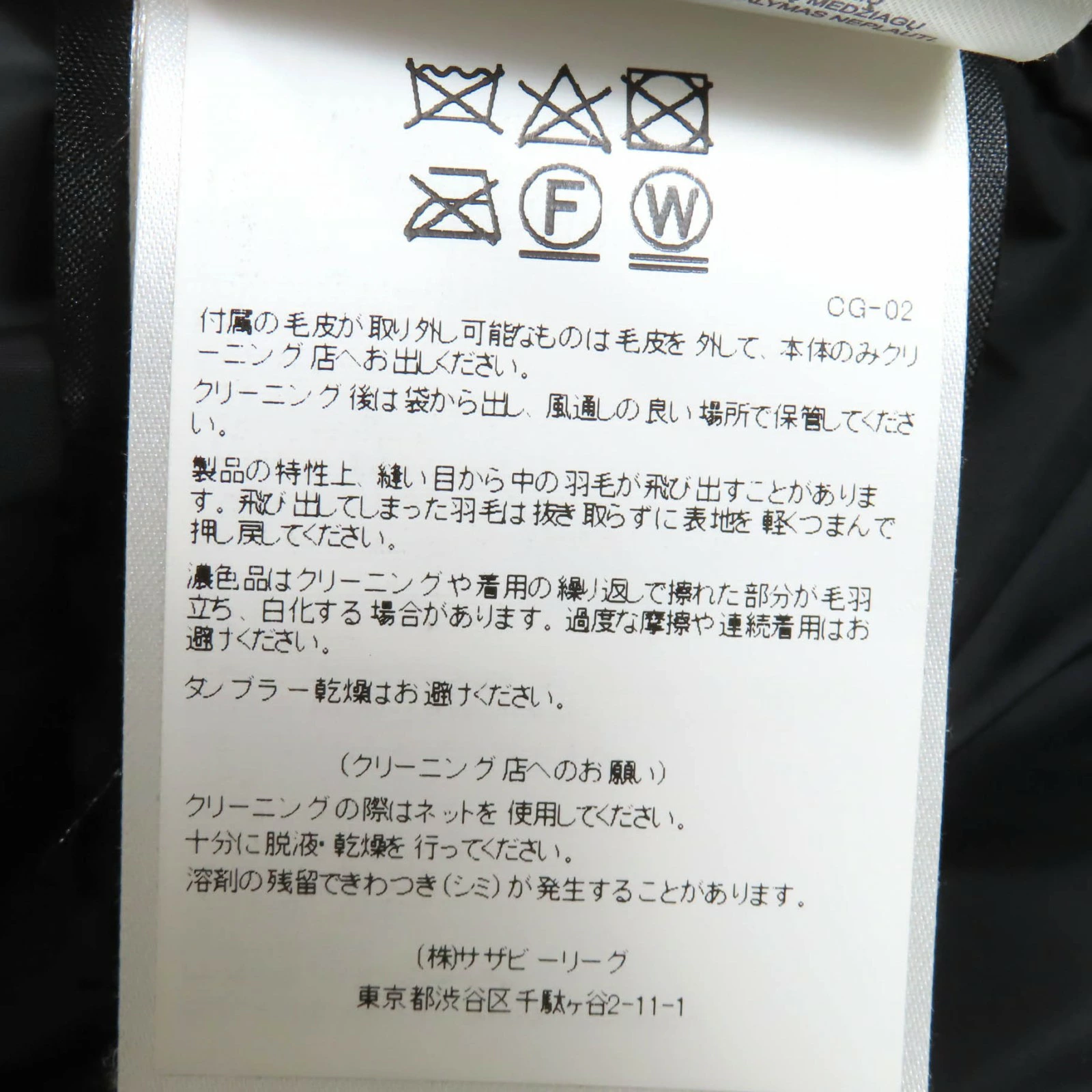 | 素材 (material) | 本体:ポリエステル85% :コットン15% 裏地:ナイロン100% 中綿:ダウン80% :フェザー20% 一部:ポリエステル100% | ||||||||||||||||