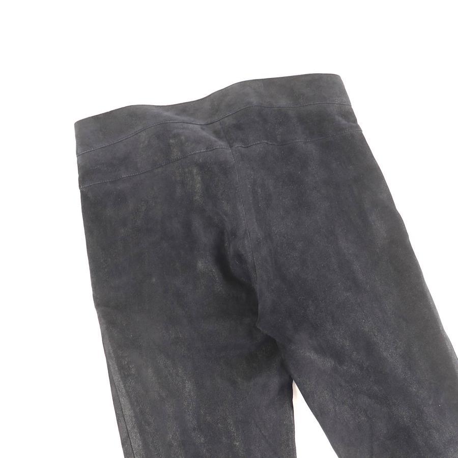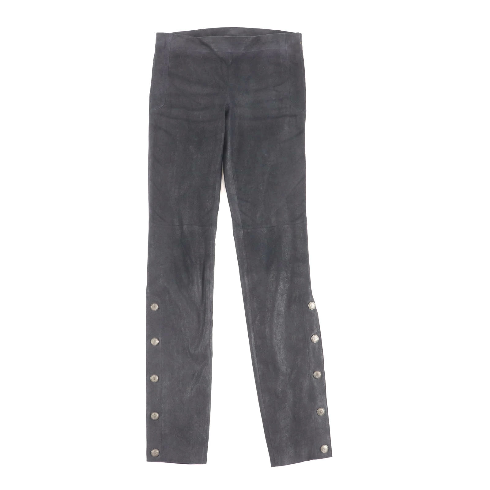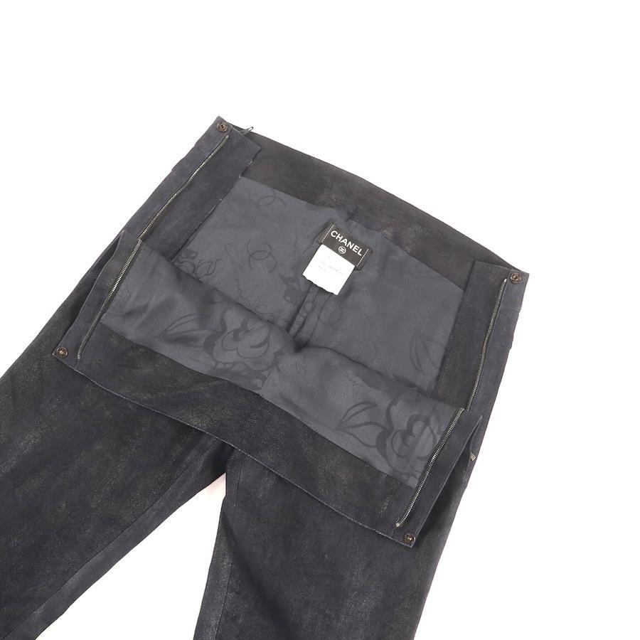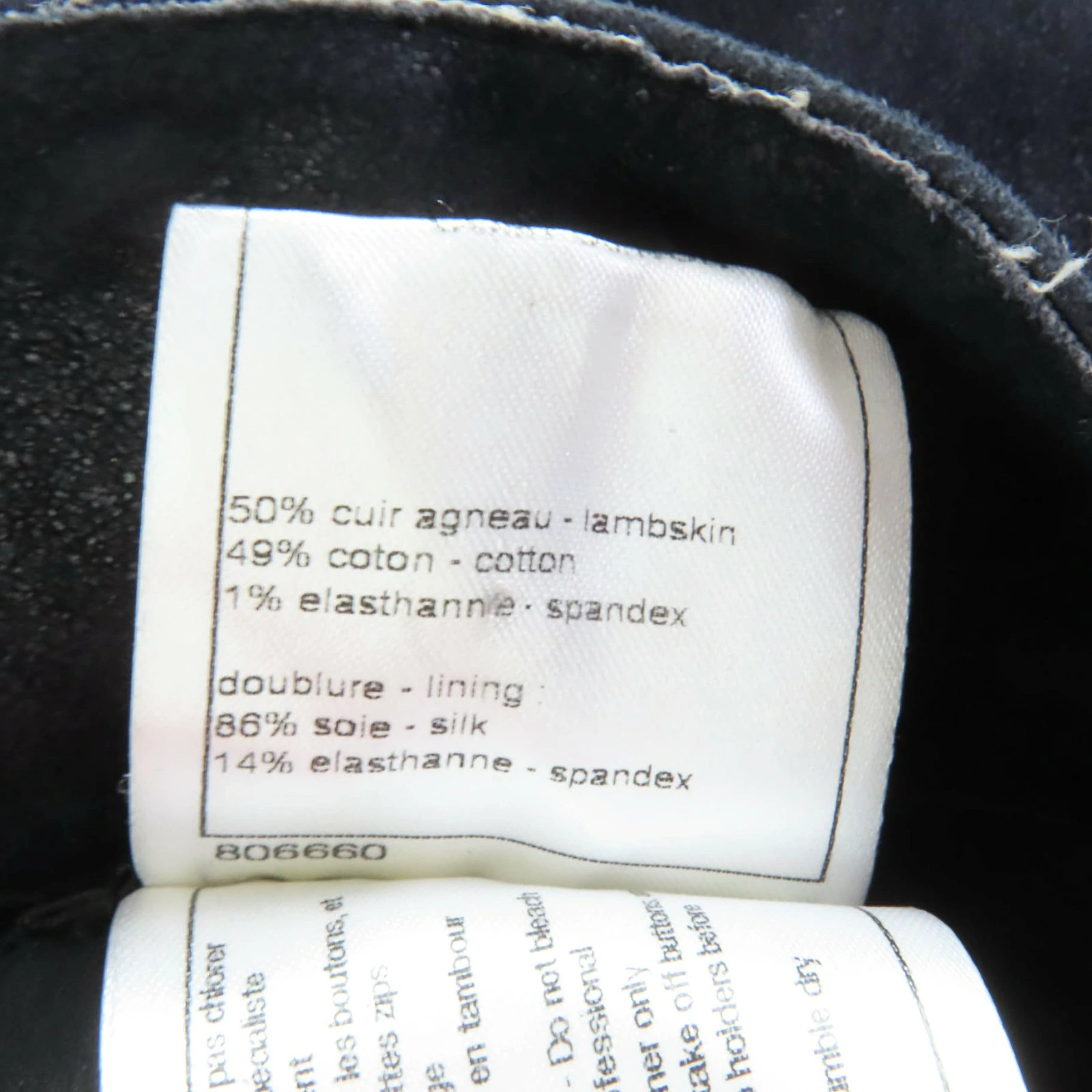 Pre-owned CHANEL P46259 Coco Mark Button Checkered Suede Leather Pants, Black, Size 38, Made in France.