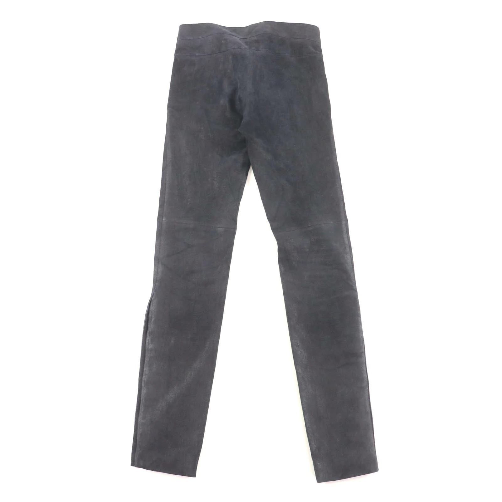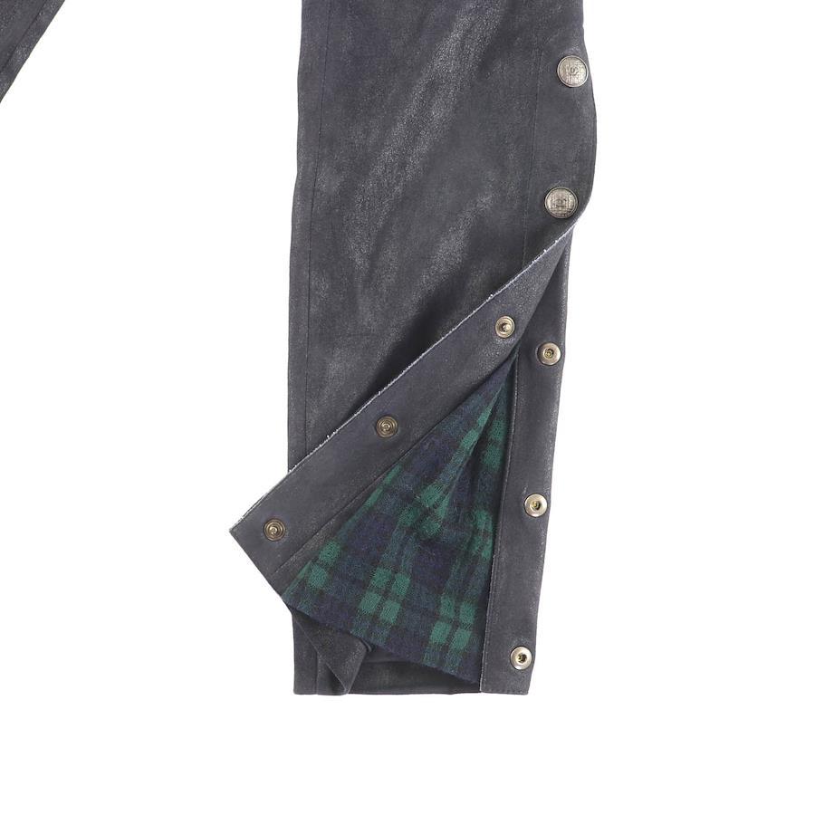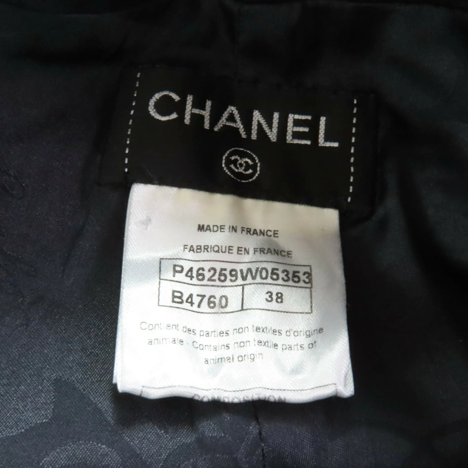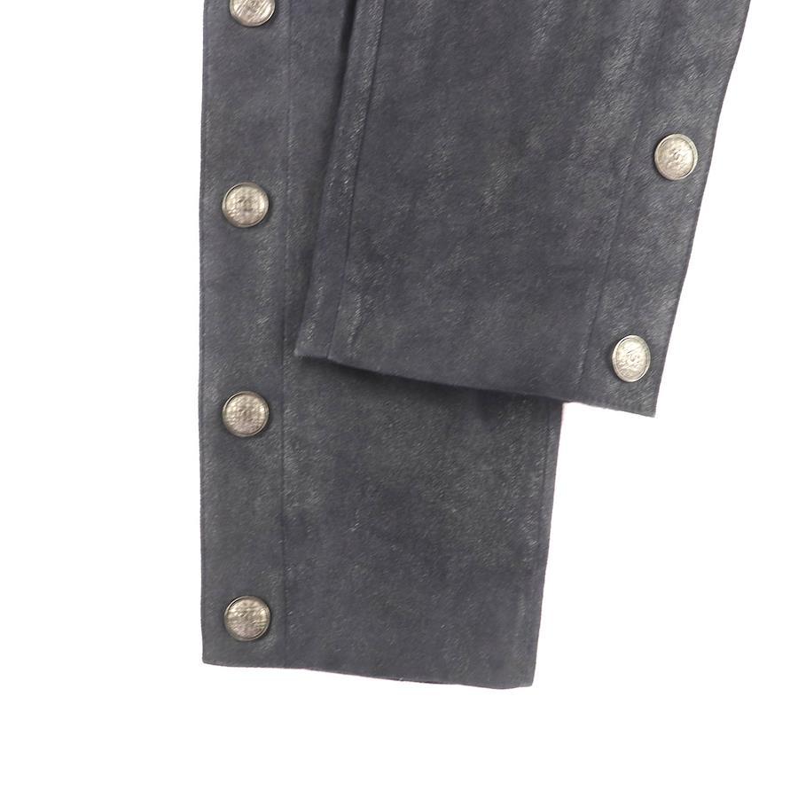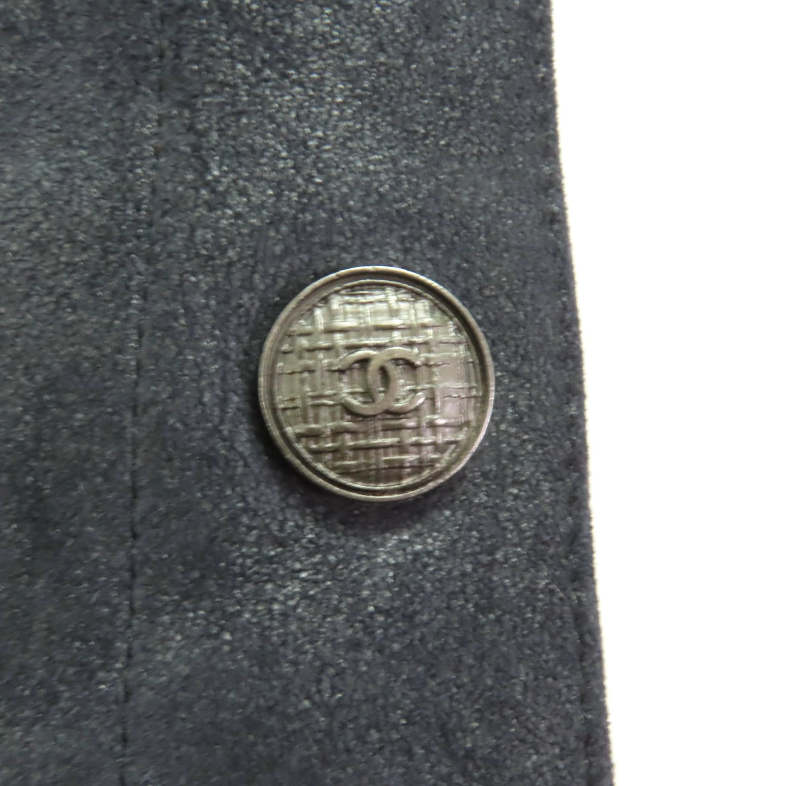 Pre-owned CHANEL P46259 Coco Mark Button Checkered Suede Leather Pants, Black, Size 38, Made in France.