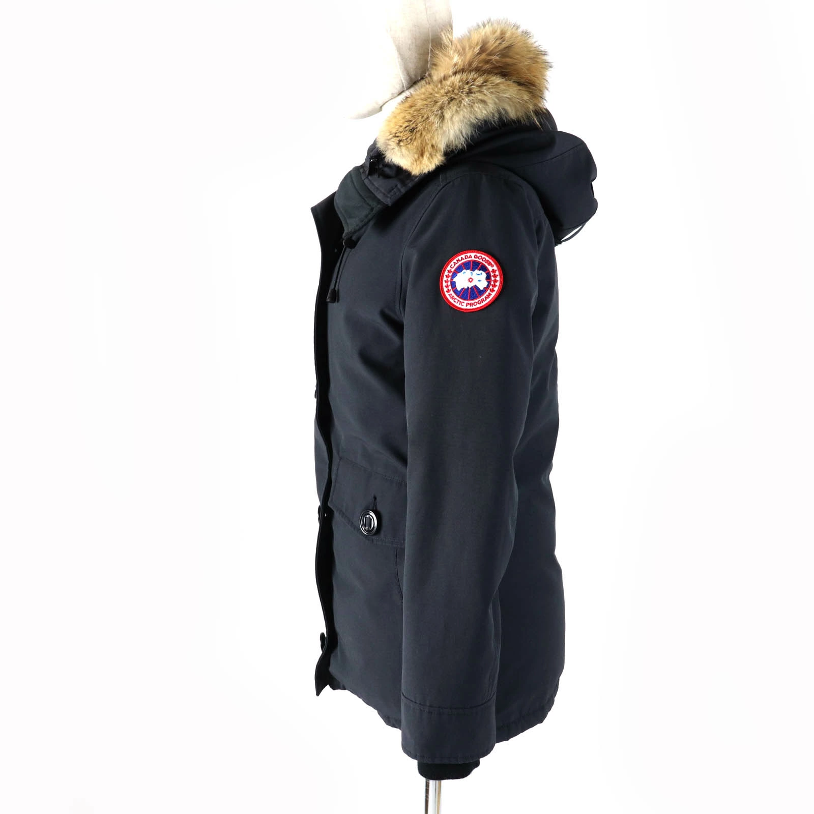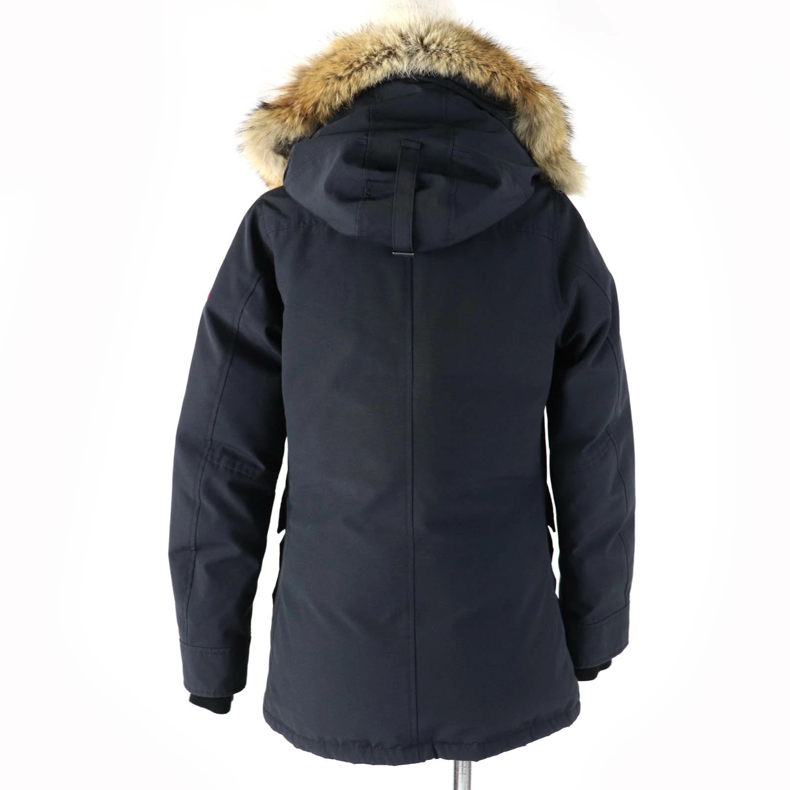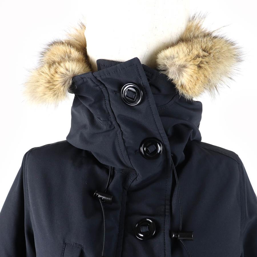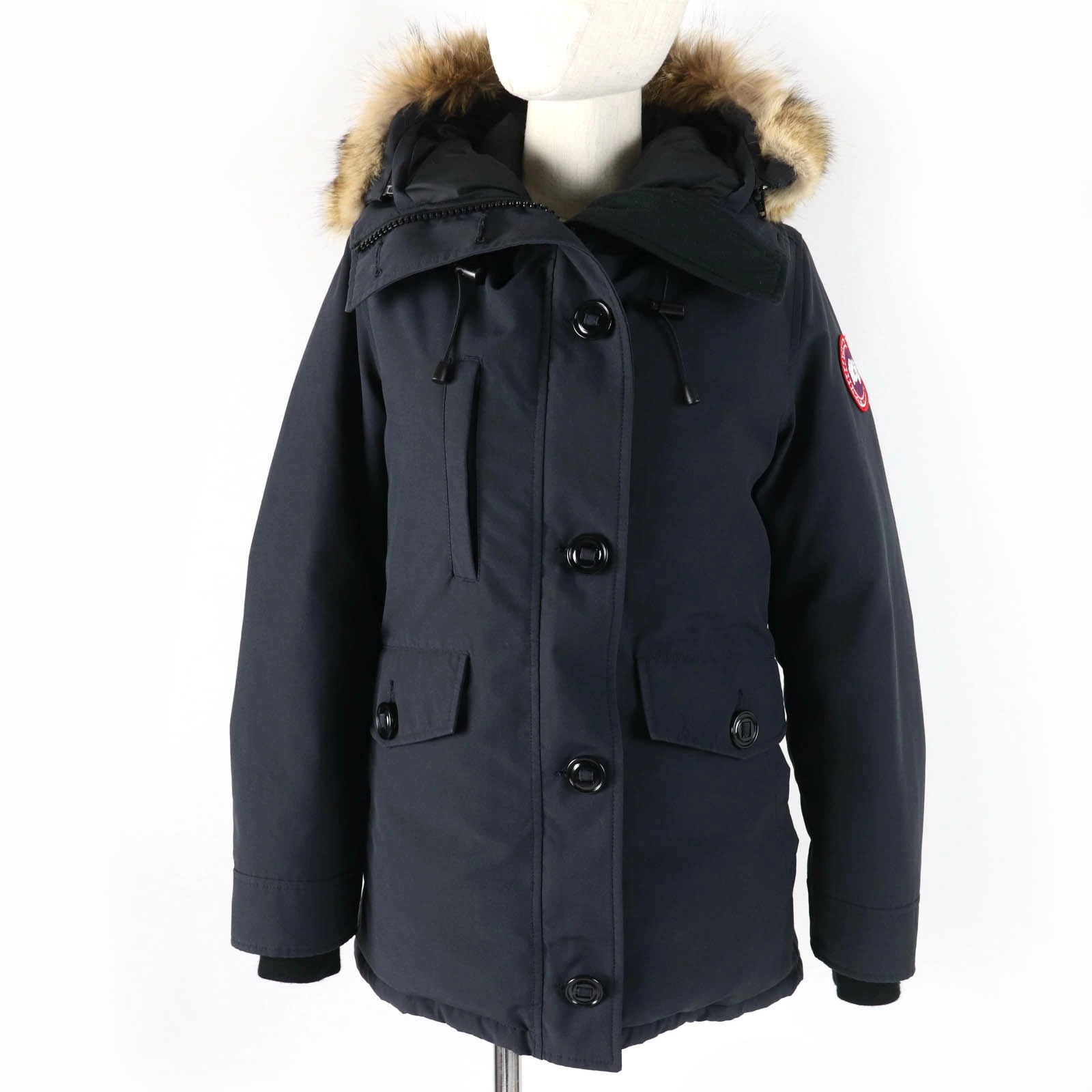 Excellent condition CANADA GOOSE CHARLOTTE 2300JL fur-hooded down coat in dark navy, size S, authentic, women's. Pre-owned.