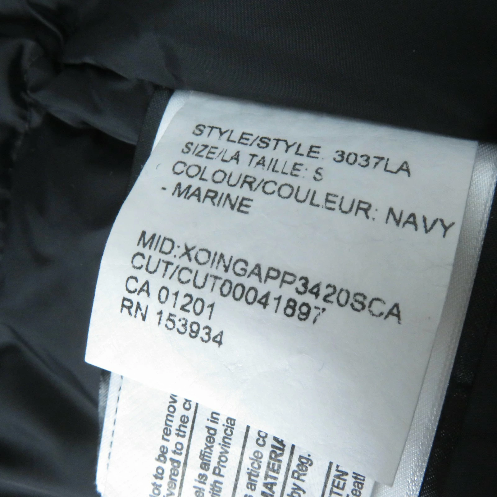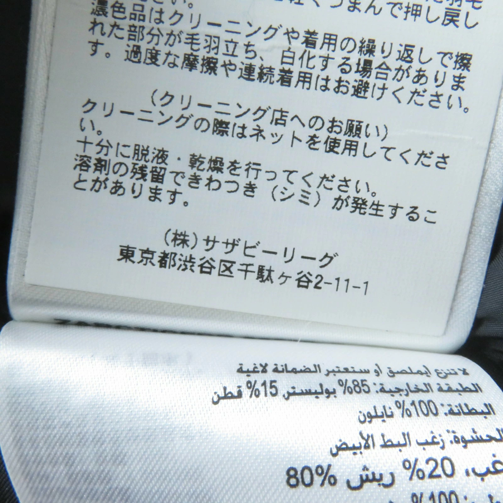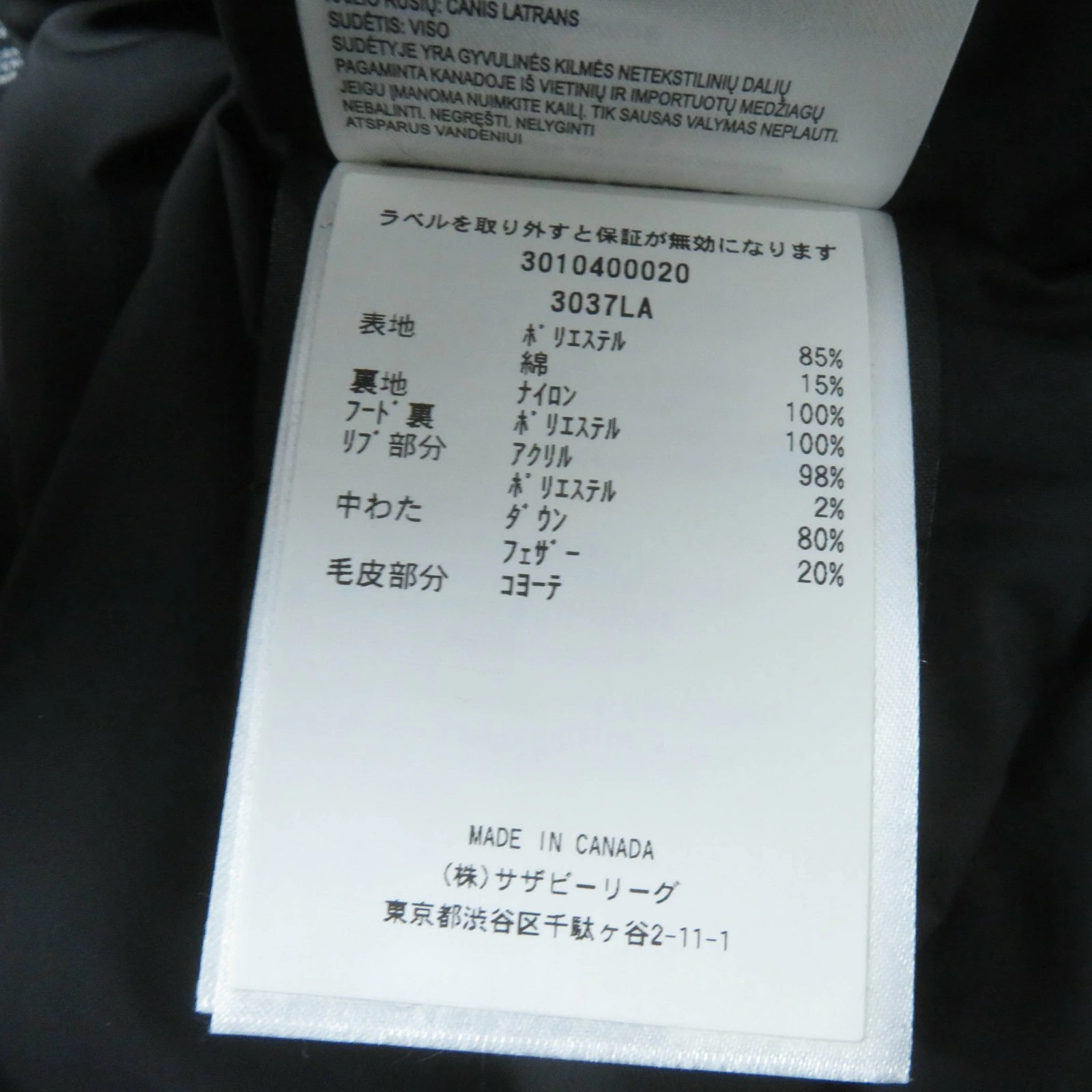 | 素材 (material) | 本体:ポリエステル85% :コットン15% 裏地:ナイロン100% 一部:ポリエステル100% :アクリル98% :ポリエステル2% 中綿:ダウン80% :フェザー20% ファー:コヨーテ | ||||||||||||||||
