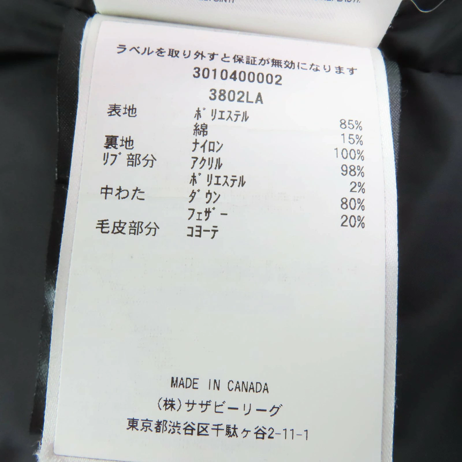 | 素材 (material) | 本体:ポリエステル85% :コットン15% 裏地:ナイロン100% 一部:アクリル98% :ポリエステル2% 中綿:ダウン80% :フェザー20% ファー:コヨーテ | ||||||||||||||||