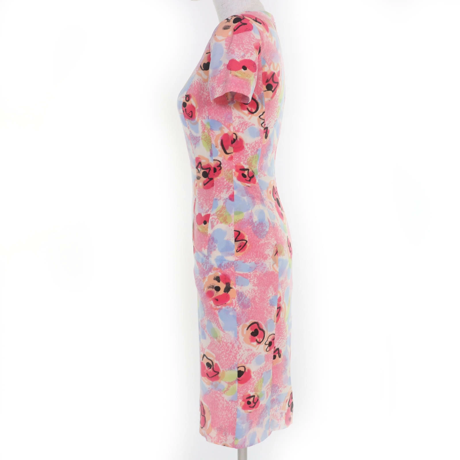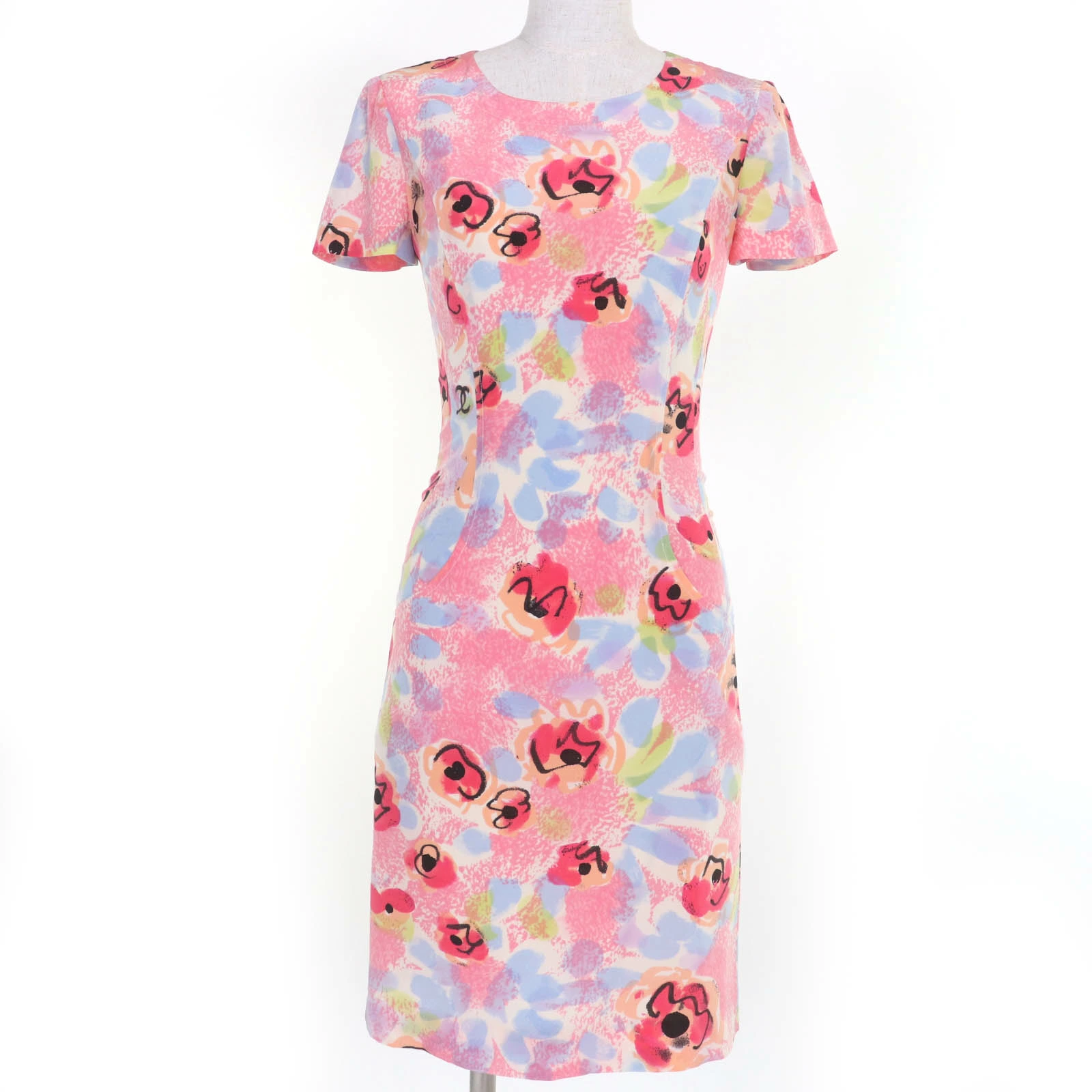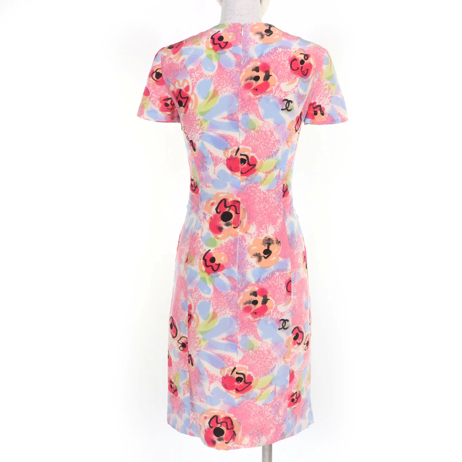 Excellent condition: Vintage CHANEL 97P P07755W03016 cotton and wool Coco Mark print short-sleeved dress, multicolor, size 36, made in France. Pre-owned.