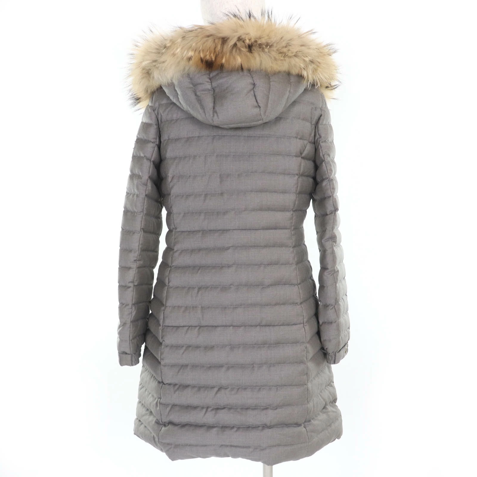 | 素材 (material) | 本体:ウール95% :シルク5% 中綿:ダウン90% :フェザー10% 裏地:ナイロン100% ファー:ラクーン | ||||||||||||||||
