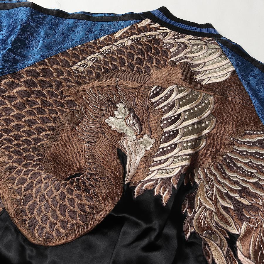 | 商品説明 | ・両面レーヨンサテンのリバーシブル ・鳳凰×無地デザイン ・袖 ジャガードフラワー柄 ・バタフライジッパー |