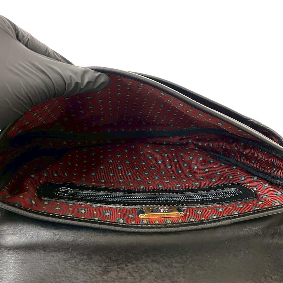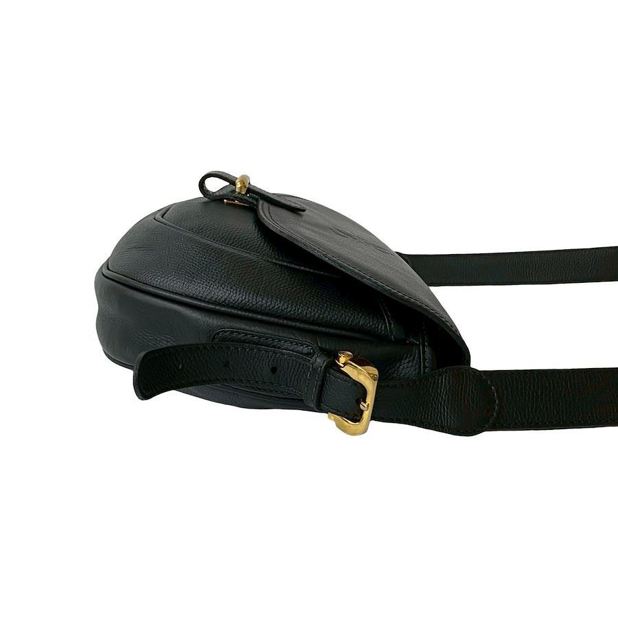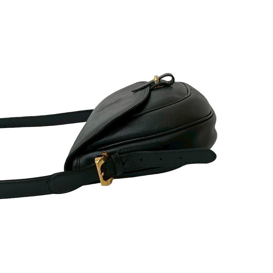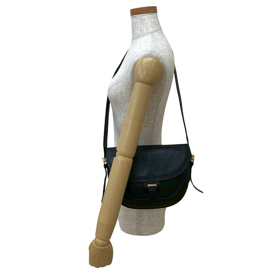 LOEWE Vintage Anagram Logo Embossed Leather Shoulder Bag/Pochette/Sacoche in Black (440-5) with Pouch