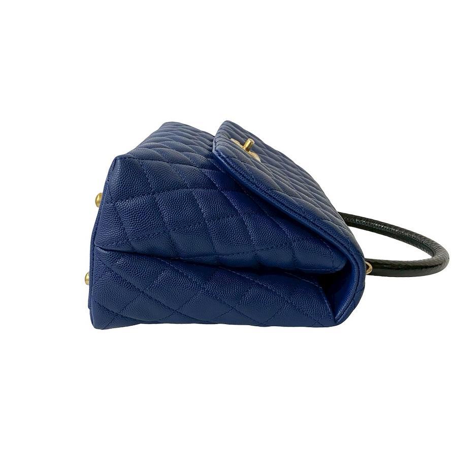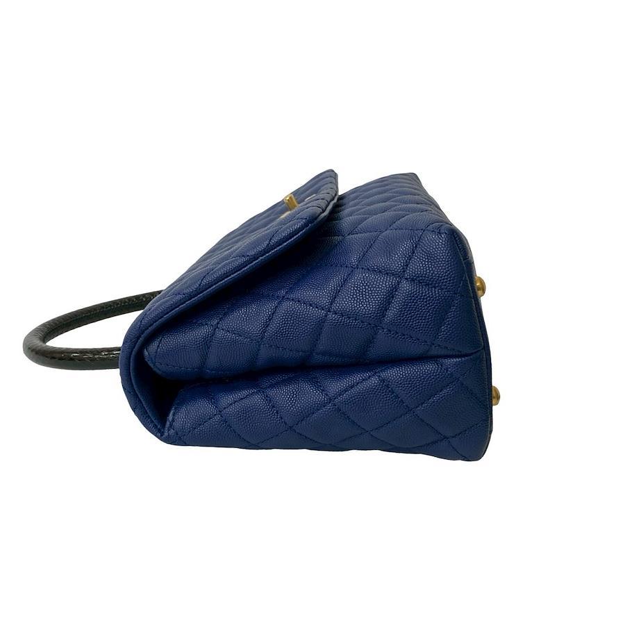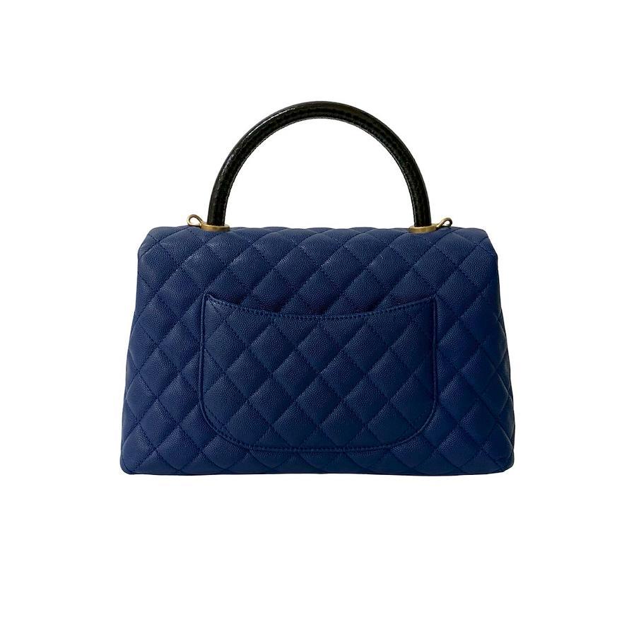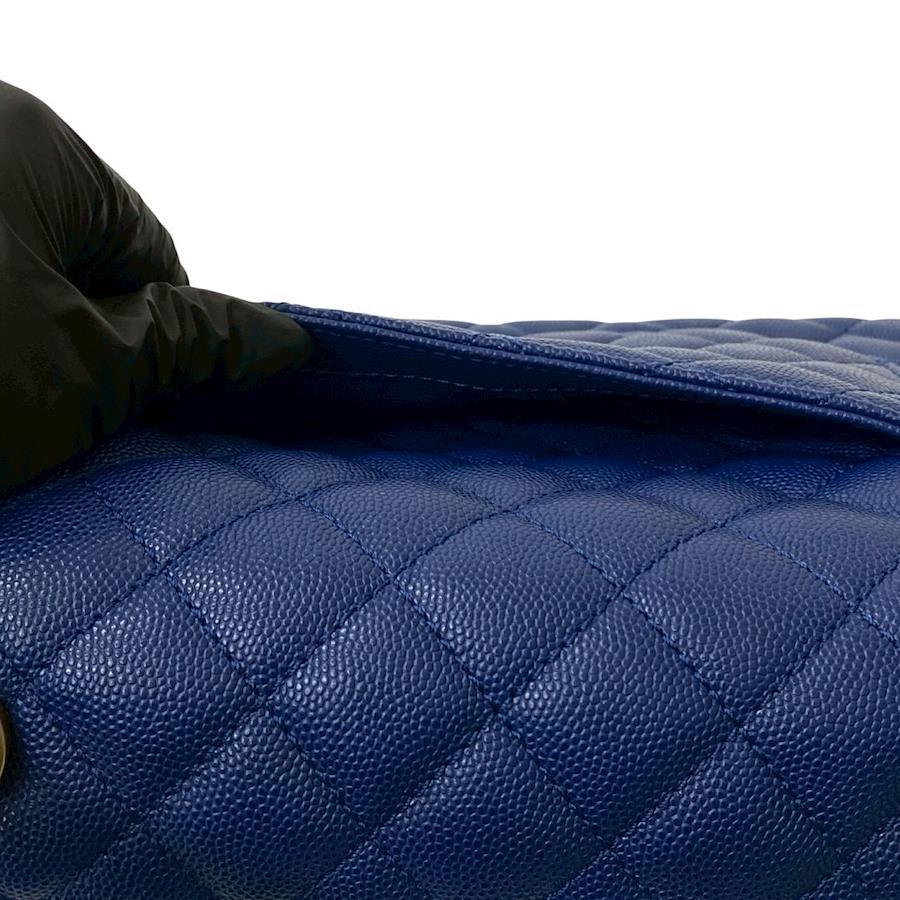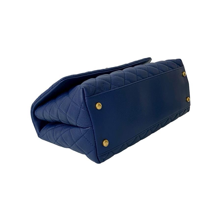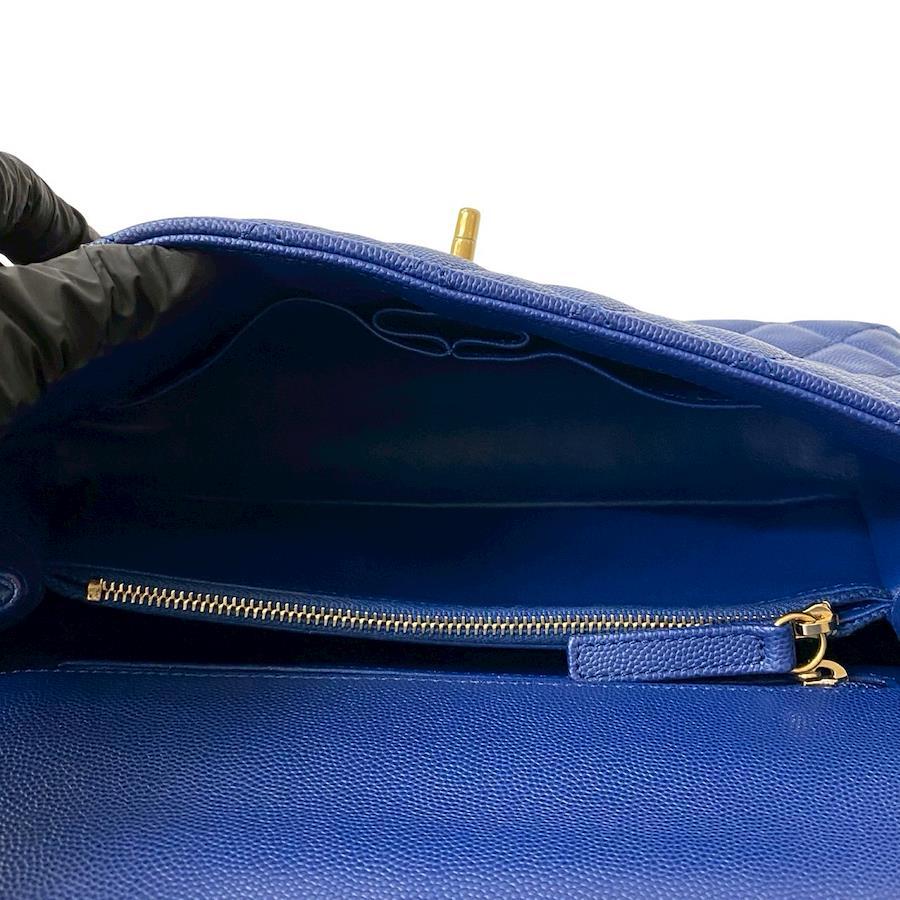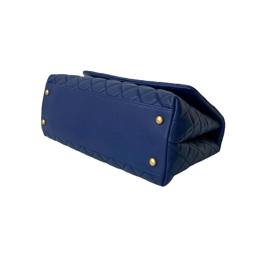 Comes with bag, card, and sticker. CHANEL Matelasse Coco Caviar Skin 2-Way Handbag/Shoulder Bag, Blue, 14576.