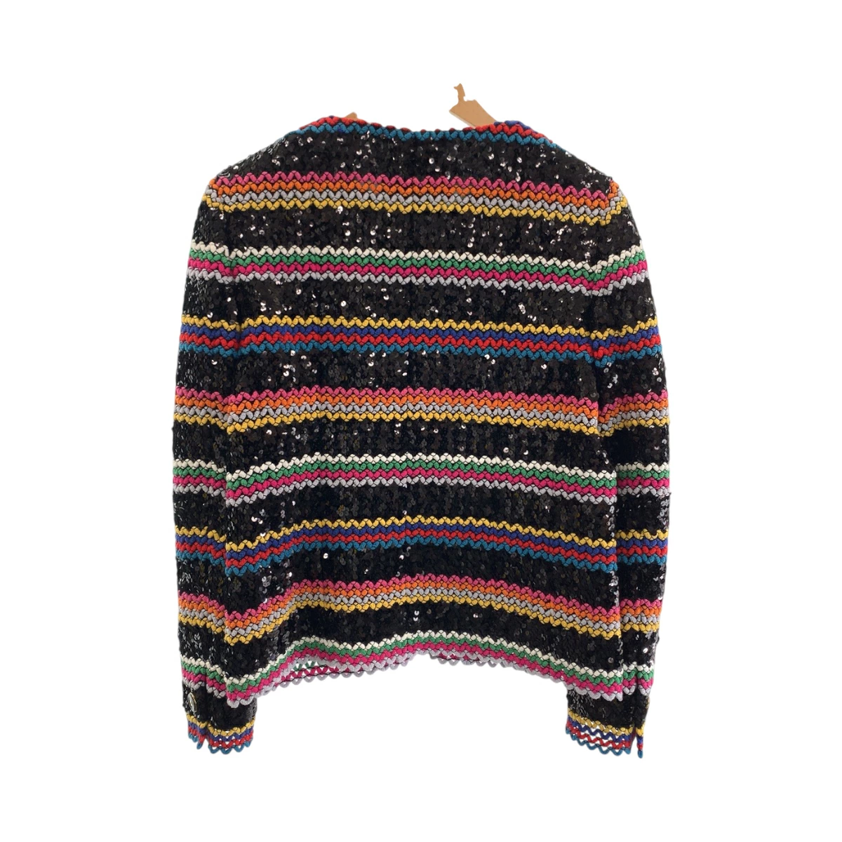 Excellent condition CHANEL Collection Line sequined multicolored cotton collarless jacket/cardigan, size 36, P72607V64263, women's, 409145 [pre-owned]
