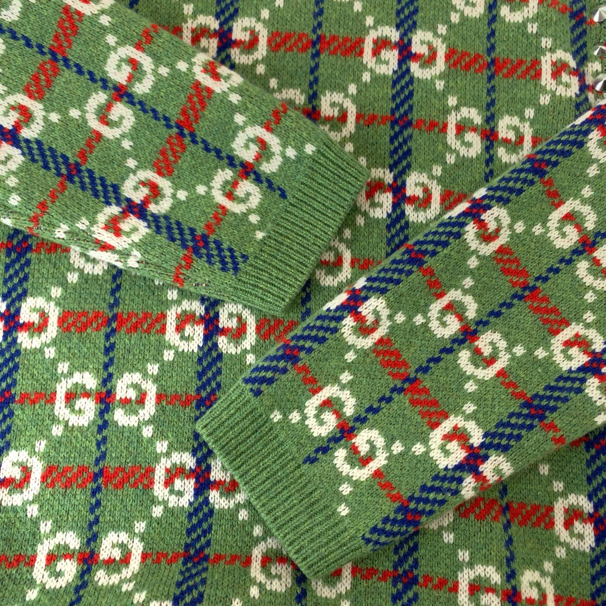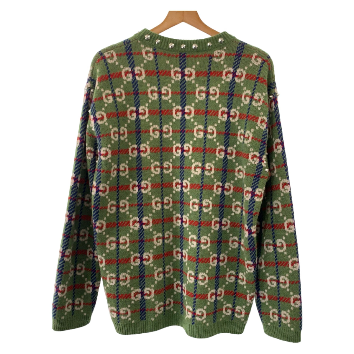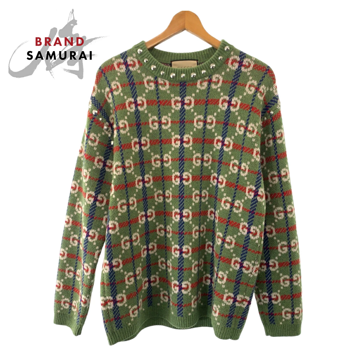 Excellent condition GUCCI GG all-over studded neck sweater, size S, multicolored wool with silver hardware, 713571, XKCOZ men's knit sweater 504540 [pre-owned]