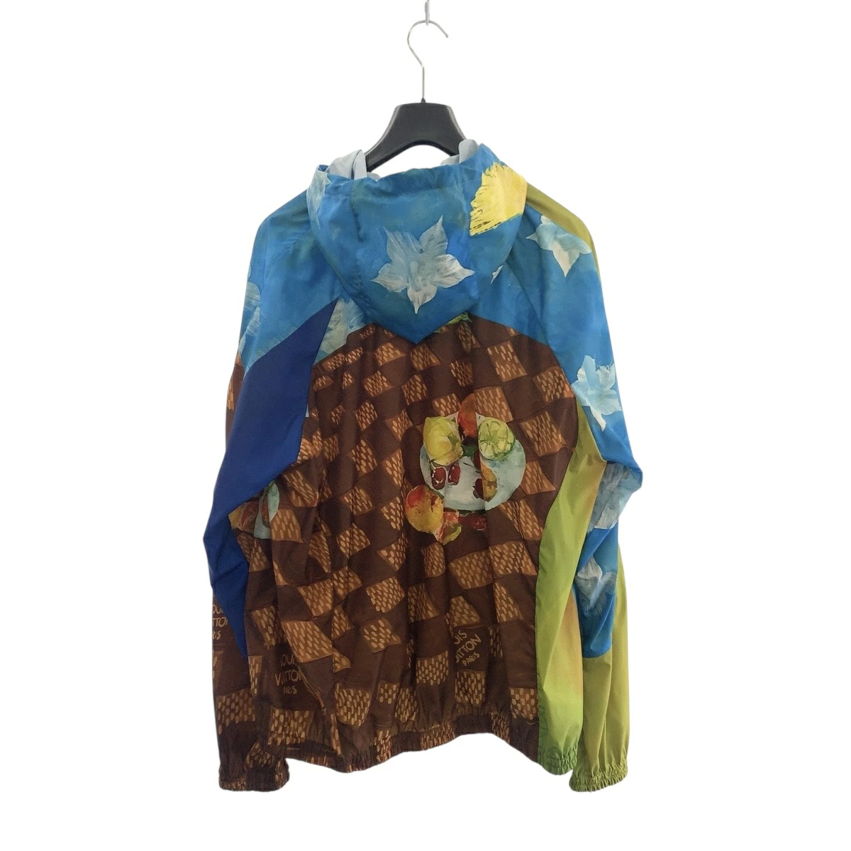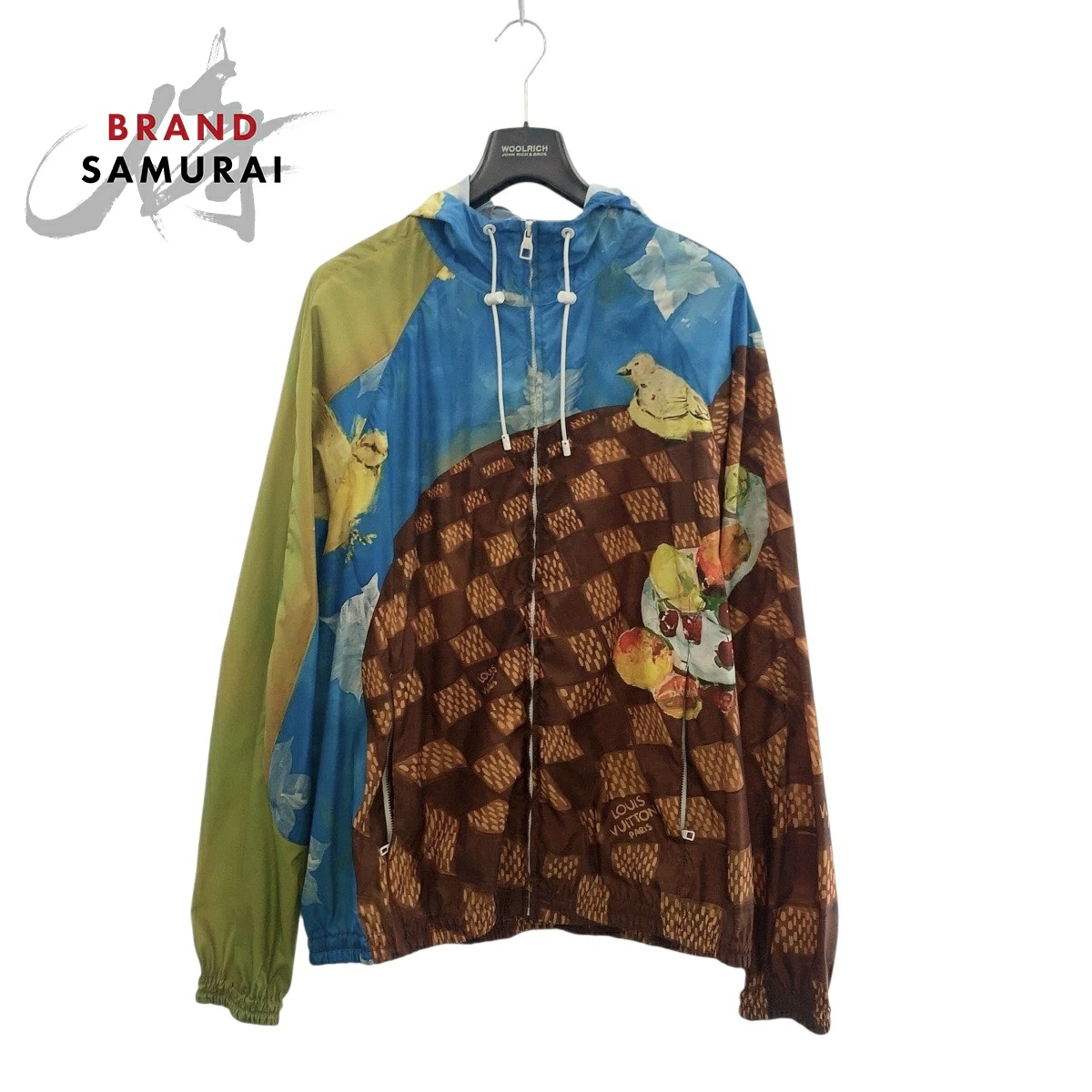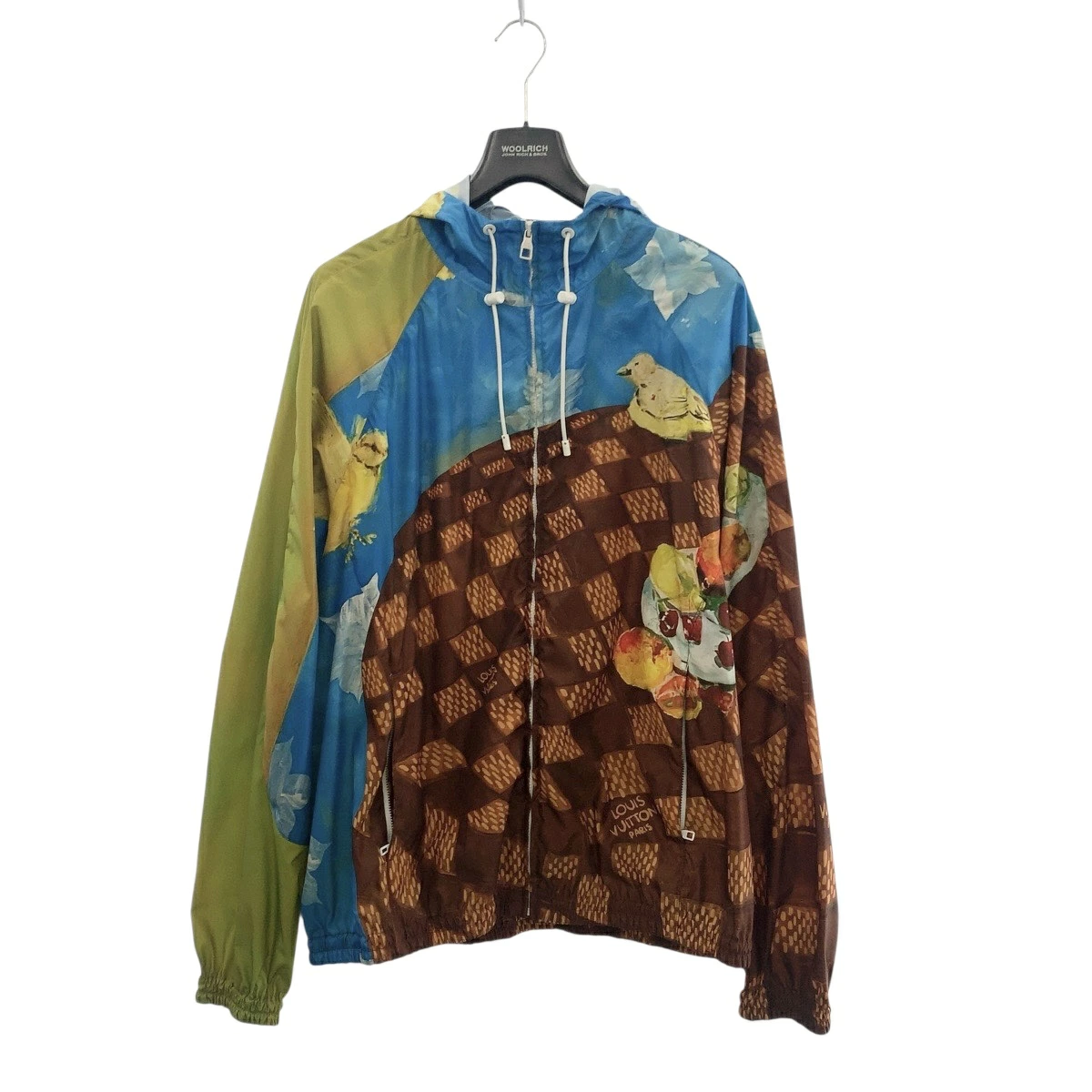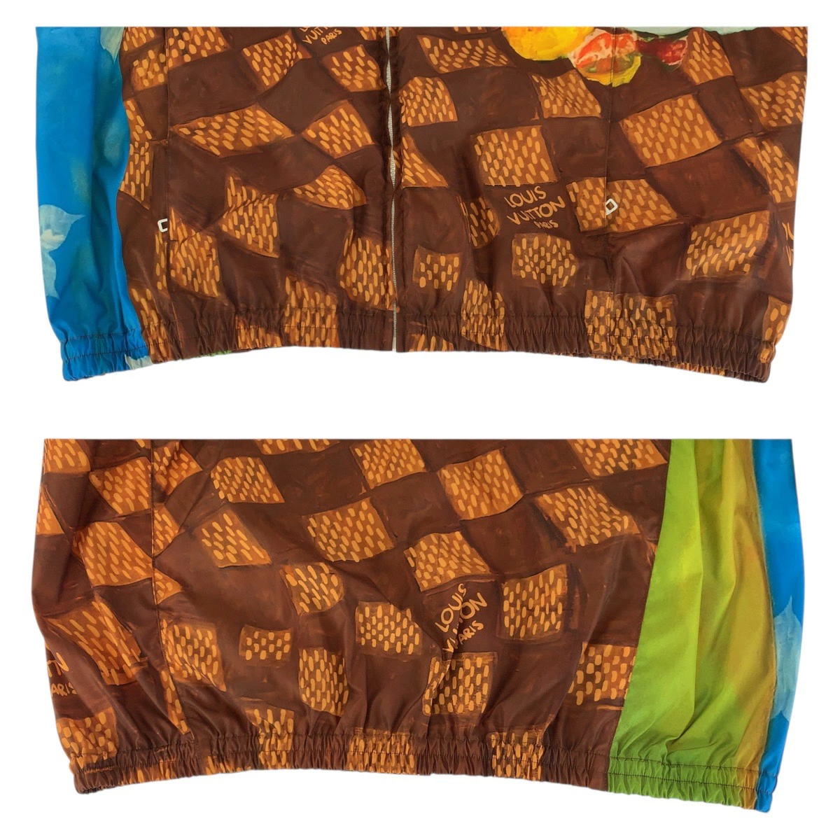 Excellent condition LOUIS VUITTON Damier Feast Windbreaker Jacket, size 52, brown and multicolored polyester, nylon jacket, windbreaker, men's, item number RM232, ASK HPB69W, pre-owned.