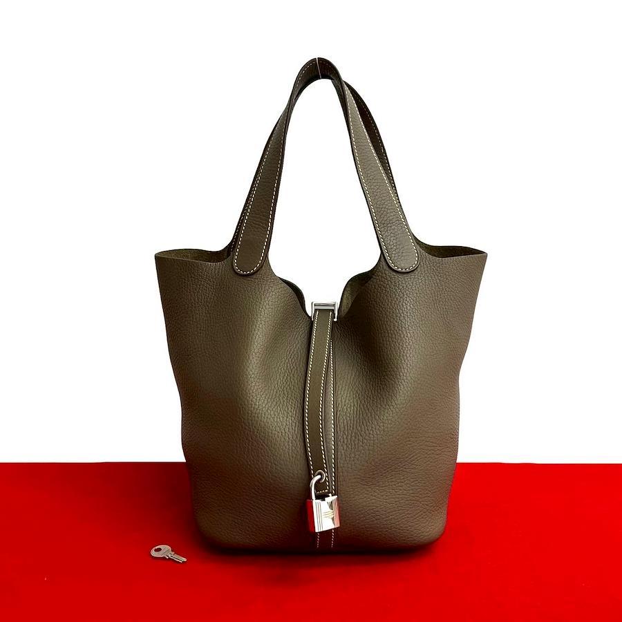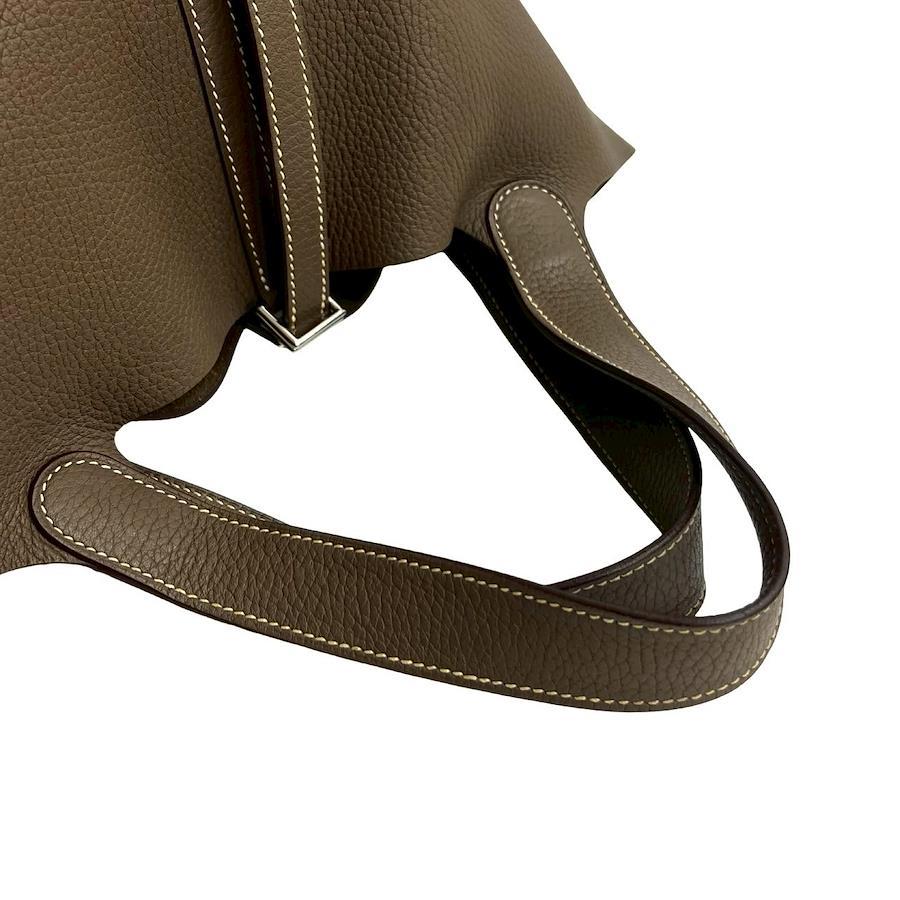 HERMES Picotin Lock MM Taurillon Clemence Leather Handbag/Mini Tote Bag Brown 42782 with Key and X Engraving
