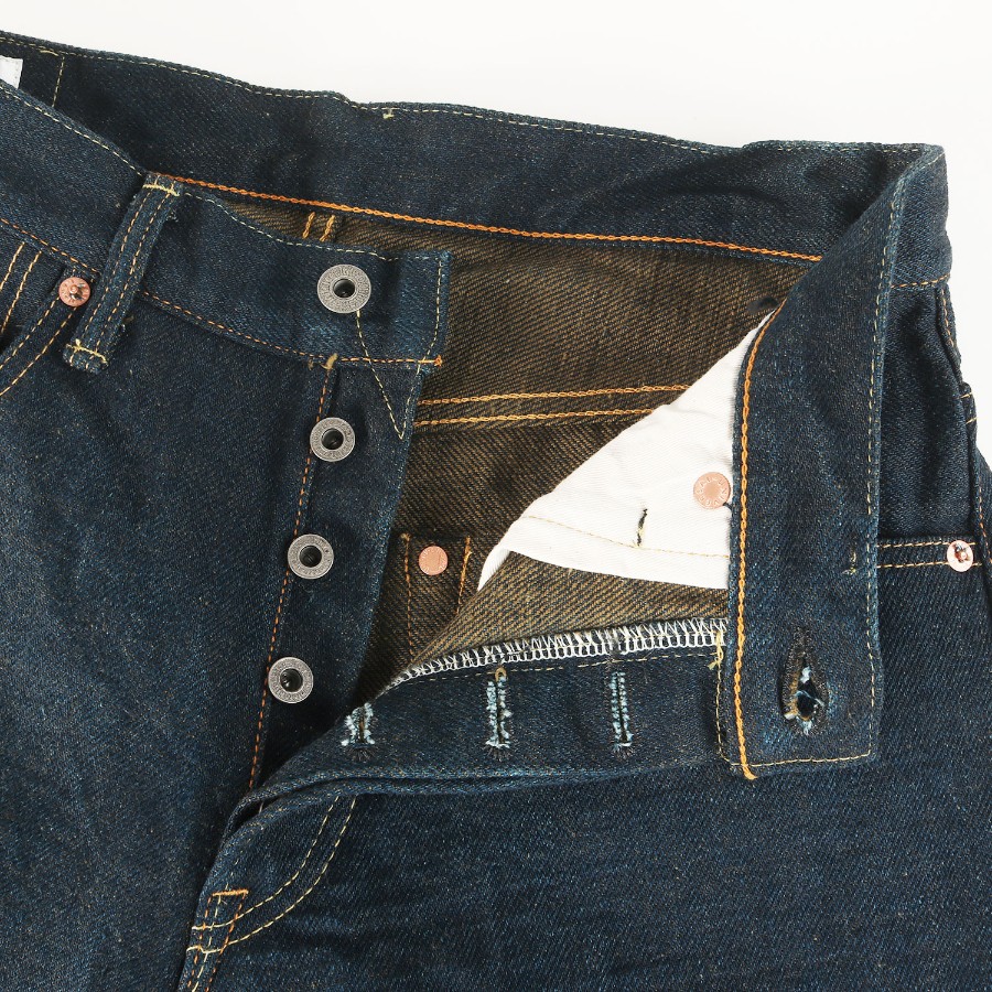 | 商品説明 | ・ザラ感が特徴的なヘビーウェイトの20ozシークレットデニム生地 ・緯糸にオリーブを使用 ・歌舞伎耳 ・ボタンフライ ・スーパーワイドテーパード ・裾 チェーンステッチ ・妙高の天然水に漬け込み洗いを施した天日干し仕上げ |
