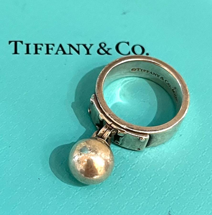 スターリングシルバーのボールダングルリング 。ニューヨークの大胆な建築とエッジーなカルチャーに着想を得たティファニー ハードウェアは、ゲージリンクとインダストリアルなデザインを融合させたひときわ目を引くシルエットが特徴です。