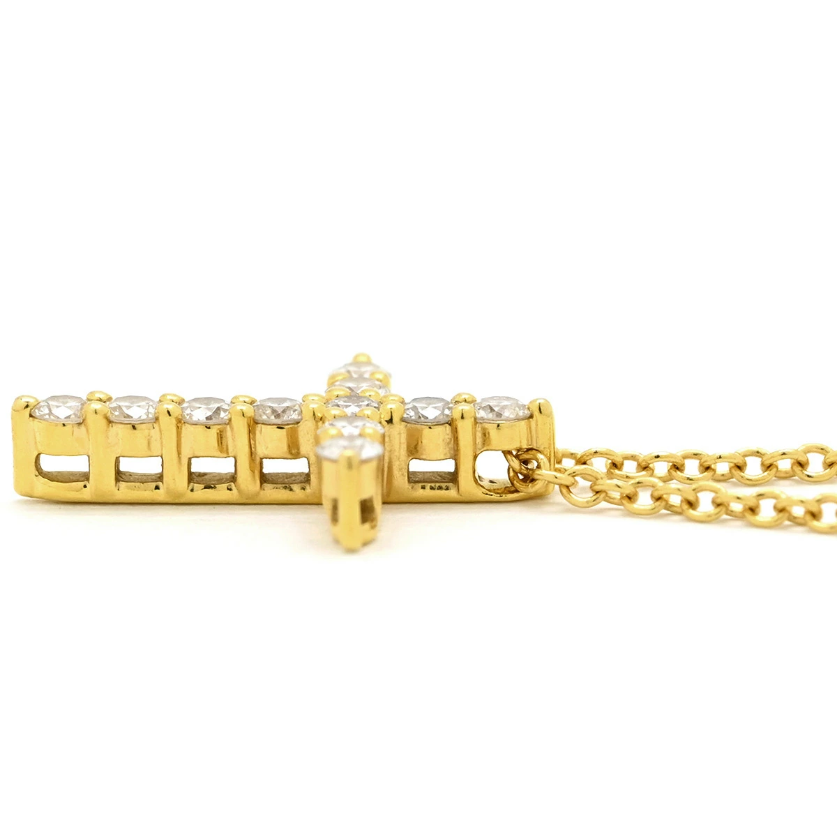 ティファニー Tiffany & Co ネックレス ミニクロス ダイヤ ペンダント K18YG ダイヤモンド イエローゴールド T&Co. Au750 18K 18金 11P 11石 十字架 スモールクロス ロザリオ - レディース 【箱】定番 人気 美品 【中古】
