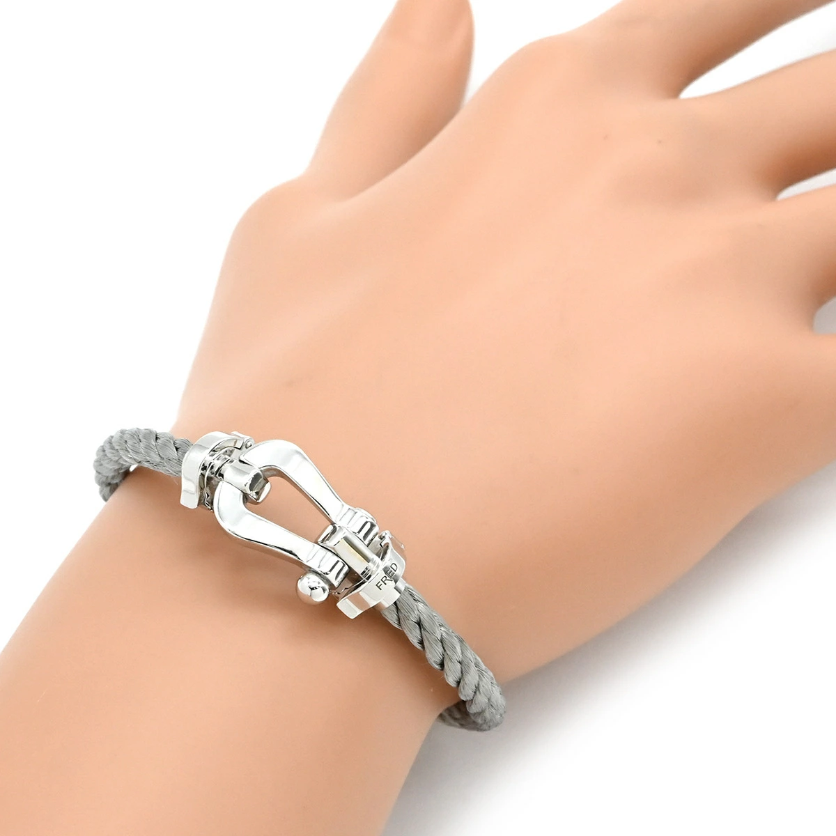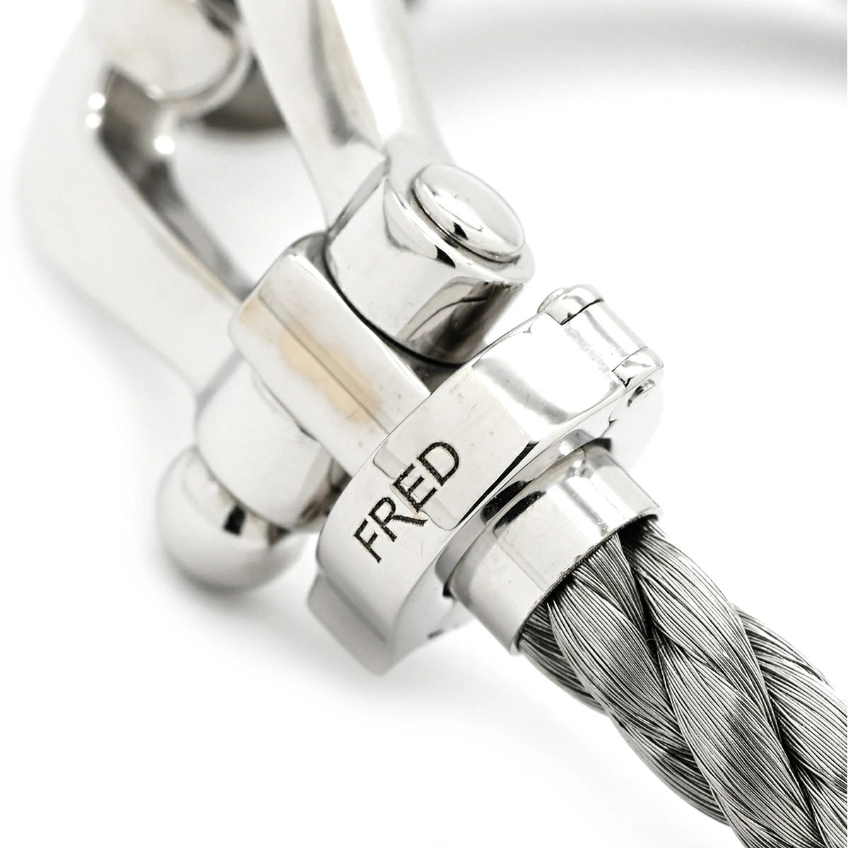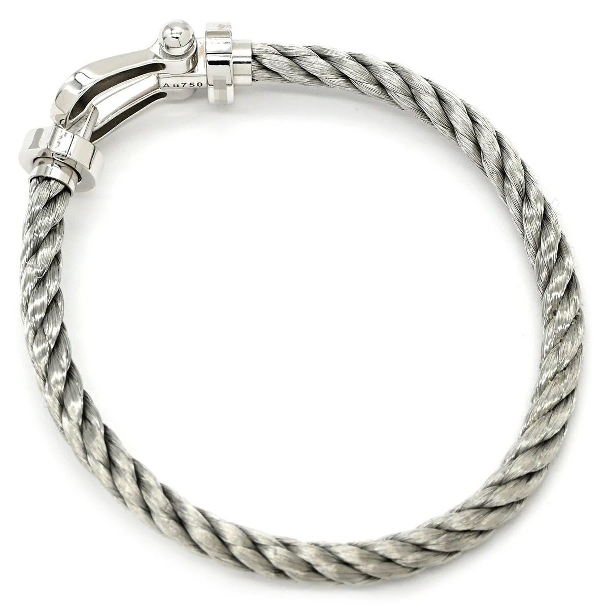 ▲クリックで拡大されますフレッド FRED ブレスレット フォース10 ラージモデル K18WG ステンレスケーブル シルバー×ホワイトゴールド Au750 18K 18金 ステンレスケーブル - レディース 【箱】定番 人気 美品 【中古】