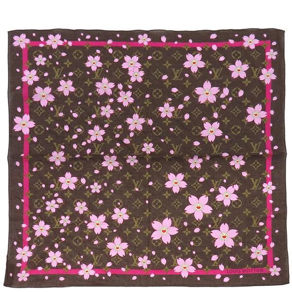 ルイヴィトン LOUIS VUITTON スカーフ LV × TM カレ チェリーブロッサム モノグラム チェリーブロッサム マロン 茶 ピンク 村上隆 M71920 レディース定番 人気 美品 【中古】
