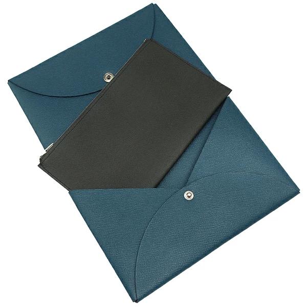 Earn 15x points! Pre-owned Hermès Calvi MM clutch bag in Epsom leather, Corvert leather, silver hardware, blue two-tone, A stamp.