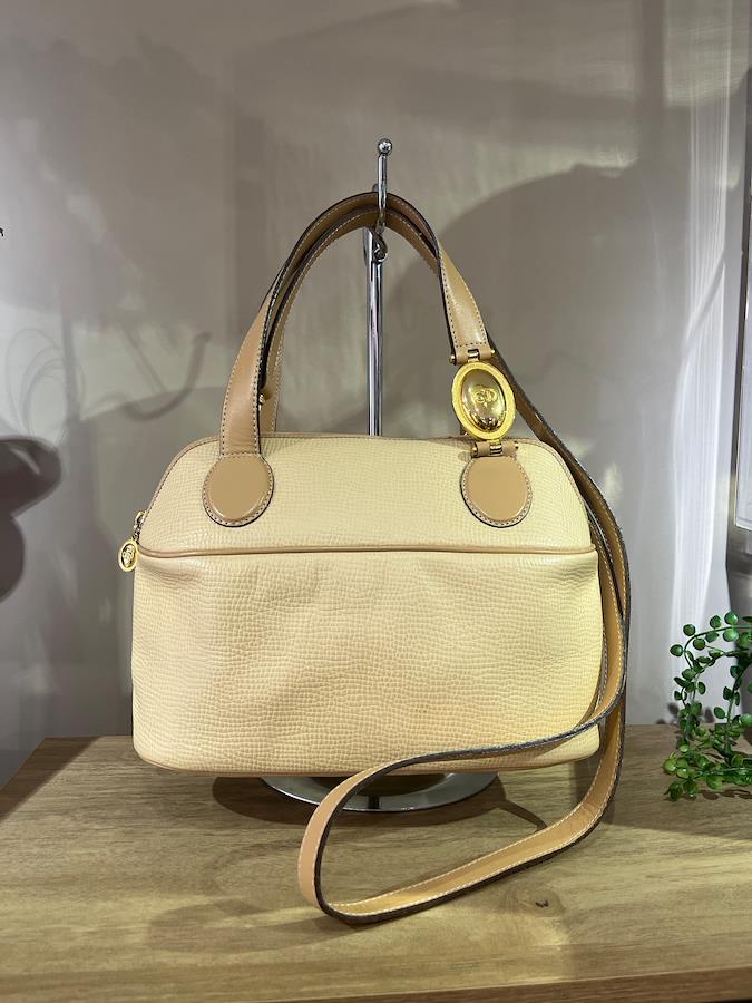 Dior ヴィンテージ 2wayバッグ|軽量カーフレザー×大容量|ベージュ×ゴールド金具の上品クラシック