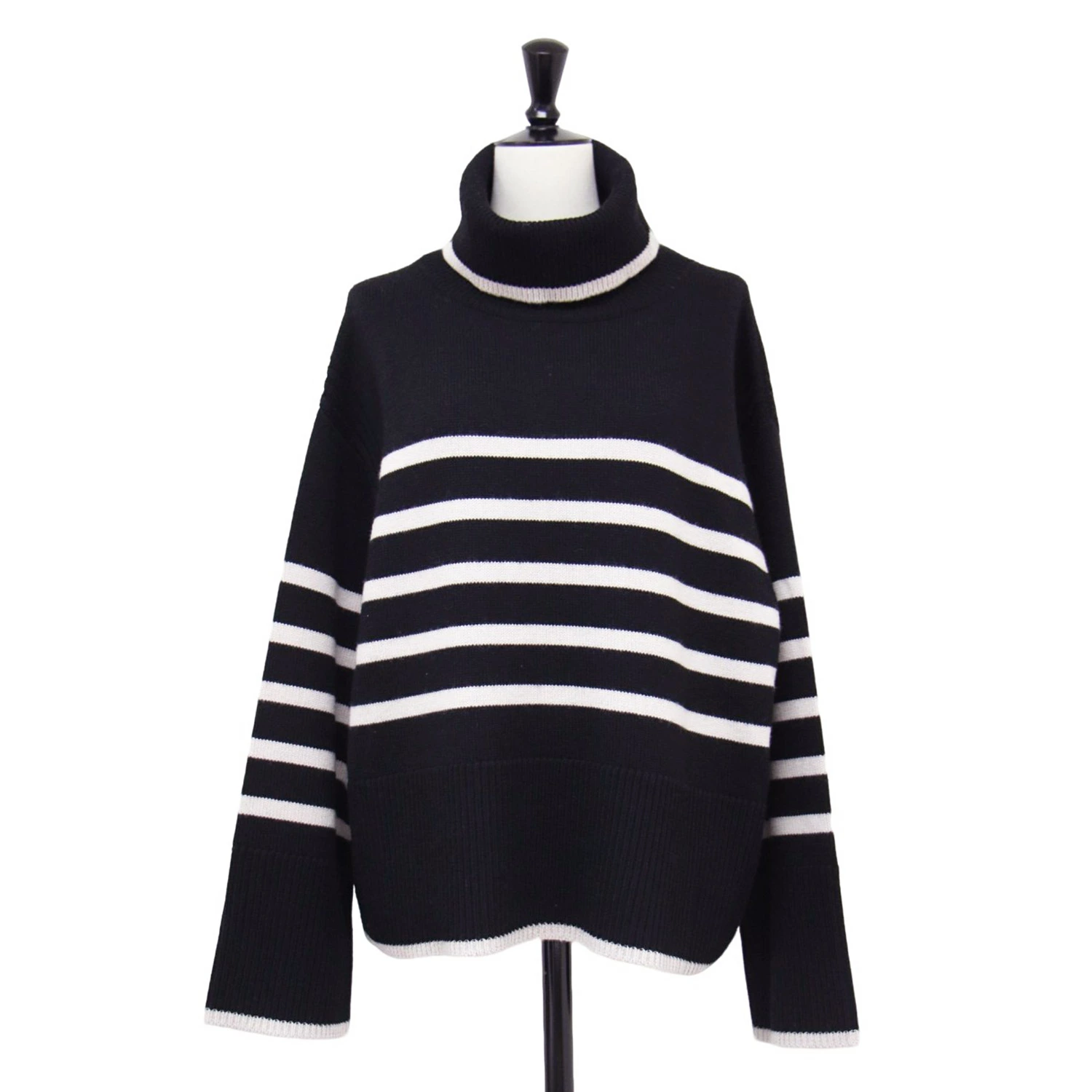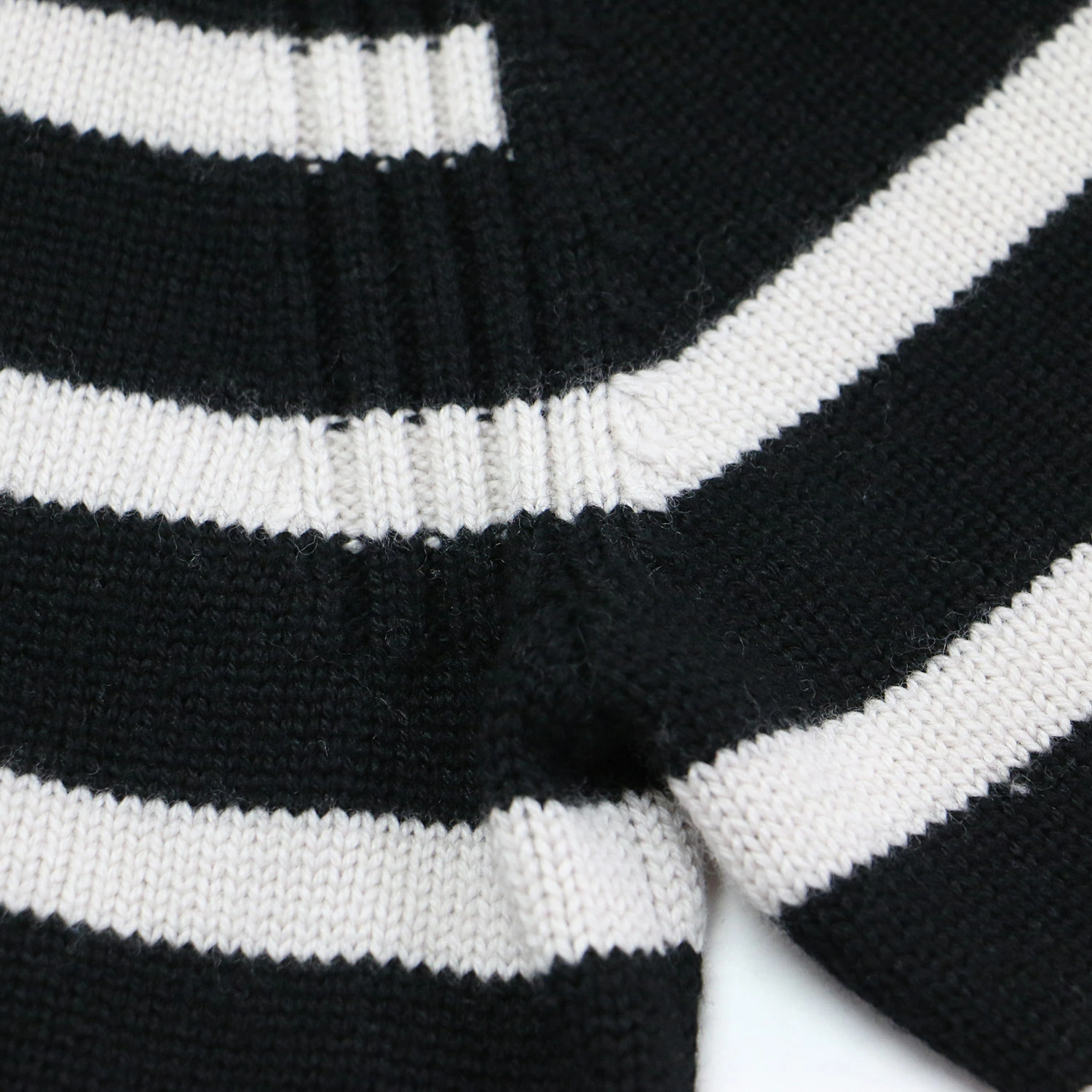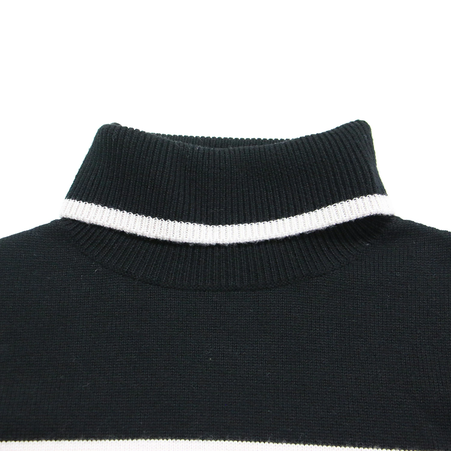 23ku Nijusanku Knit, Black, Size: 46 (XXL) | Fall/Winter 23 Wool Mid-Gauge Striped Knit Pullover, Long Sleeve, Off-Turtleneck, Short Length, Ribbed Wool, Washable | Women's Sweater, Long Sleeve Top [Pre-owned] [K4631]