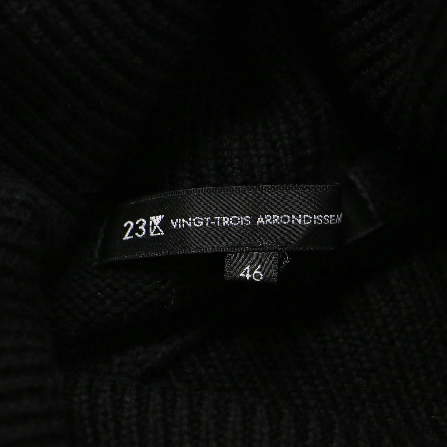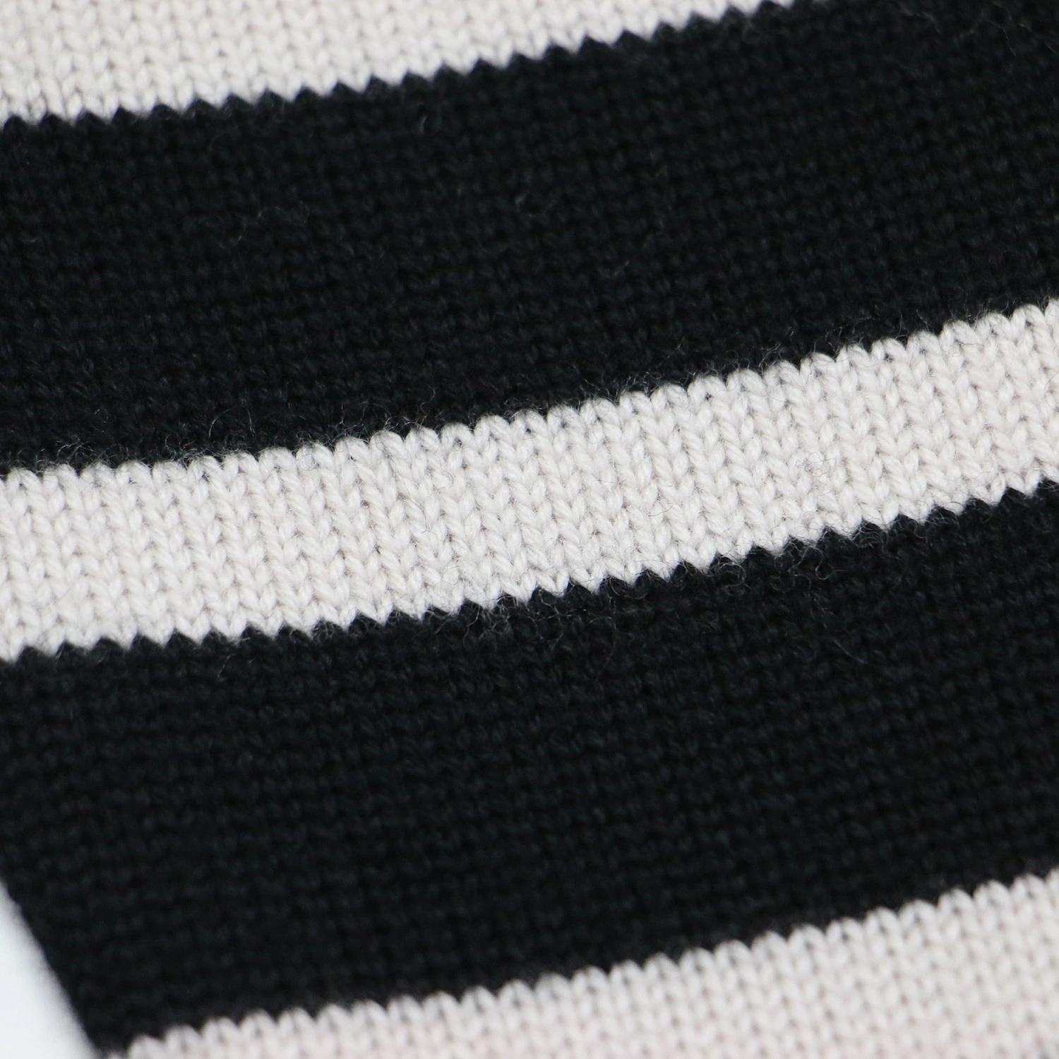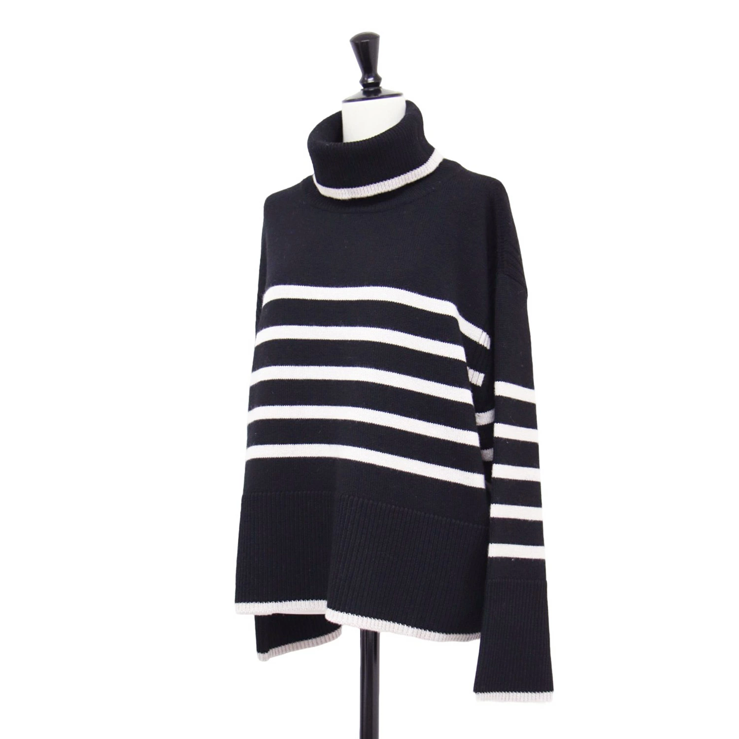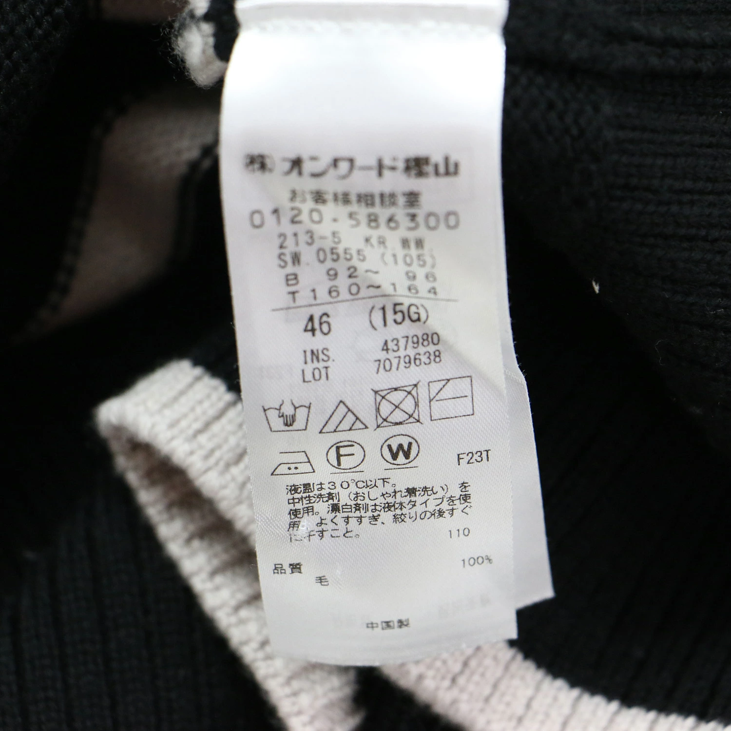 23ku Nijusanku Knit, Black, Size: 46 (XXL) | Fall/Winter 23 Wool Mid-Gauge Striped Knit Pullover, Long Sleeve, Off-Turtleneck, Short Length, Ribbed Wool, Washable | Women's Sweater, Long Sleeve Top [Pre-owned] [K4631]