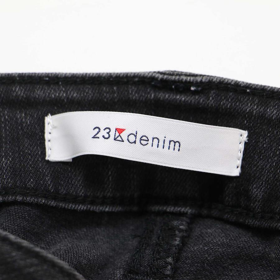 23ku Nijuusanku Pants, Black, Size 44 (XL), Distressed Low-Rise Skinny Denim Pants, Stretch Cotton, Slim Fit, Women's Jeans, Pre-Owned, K4618