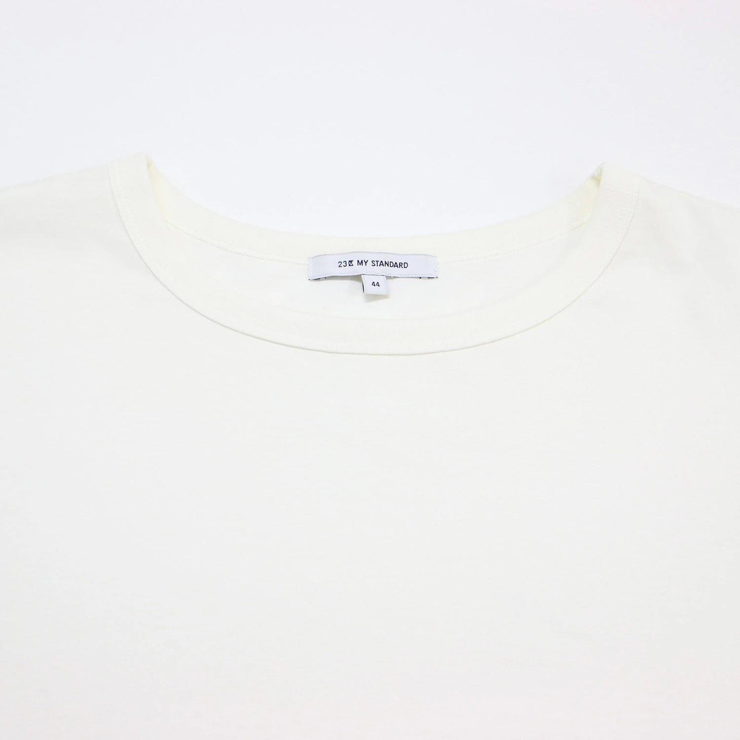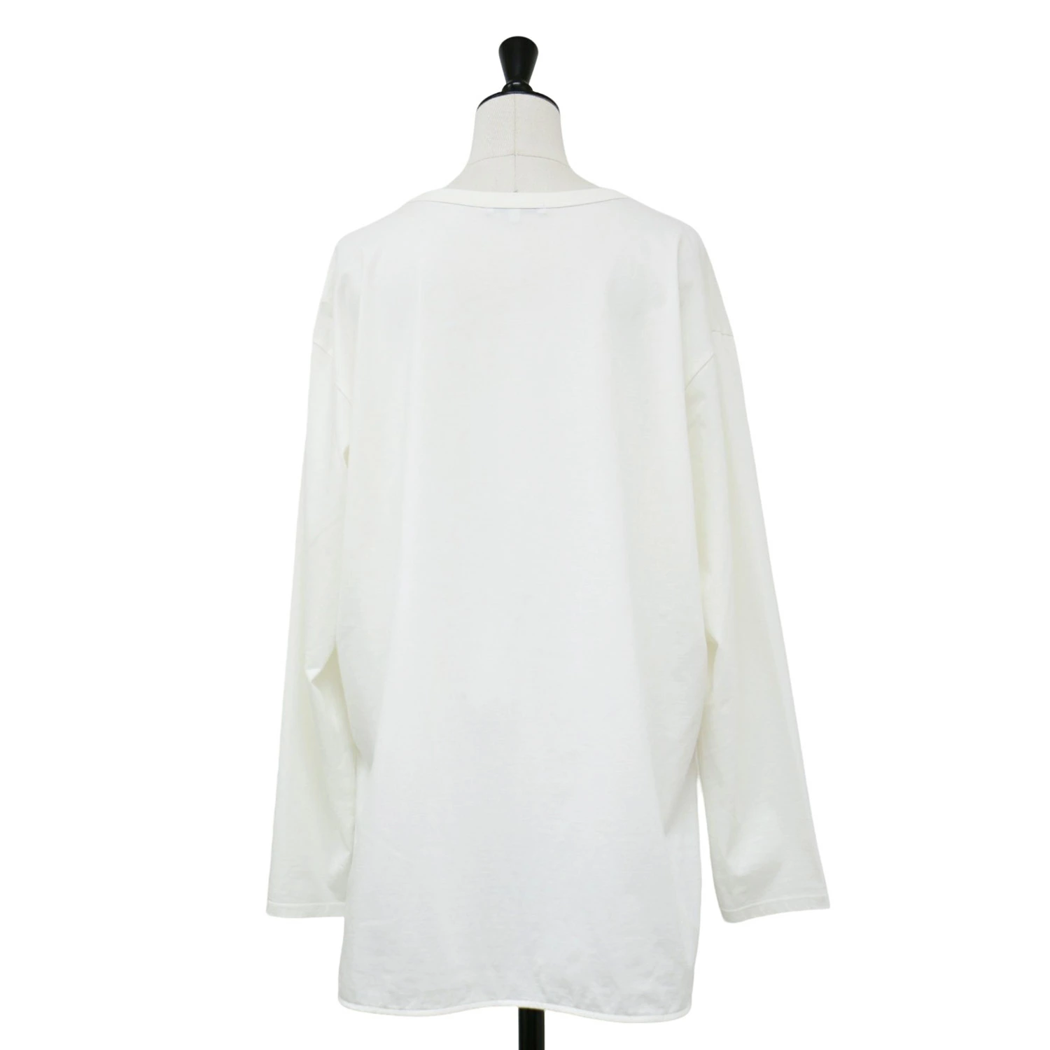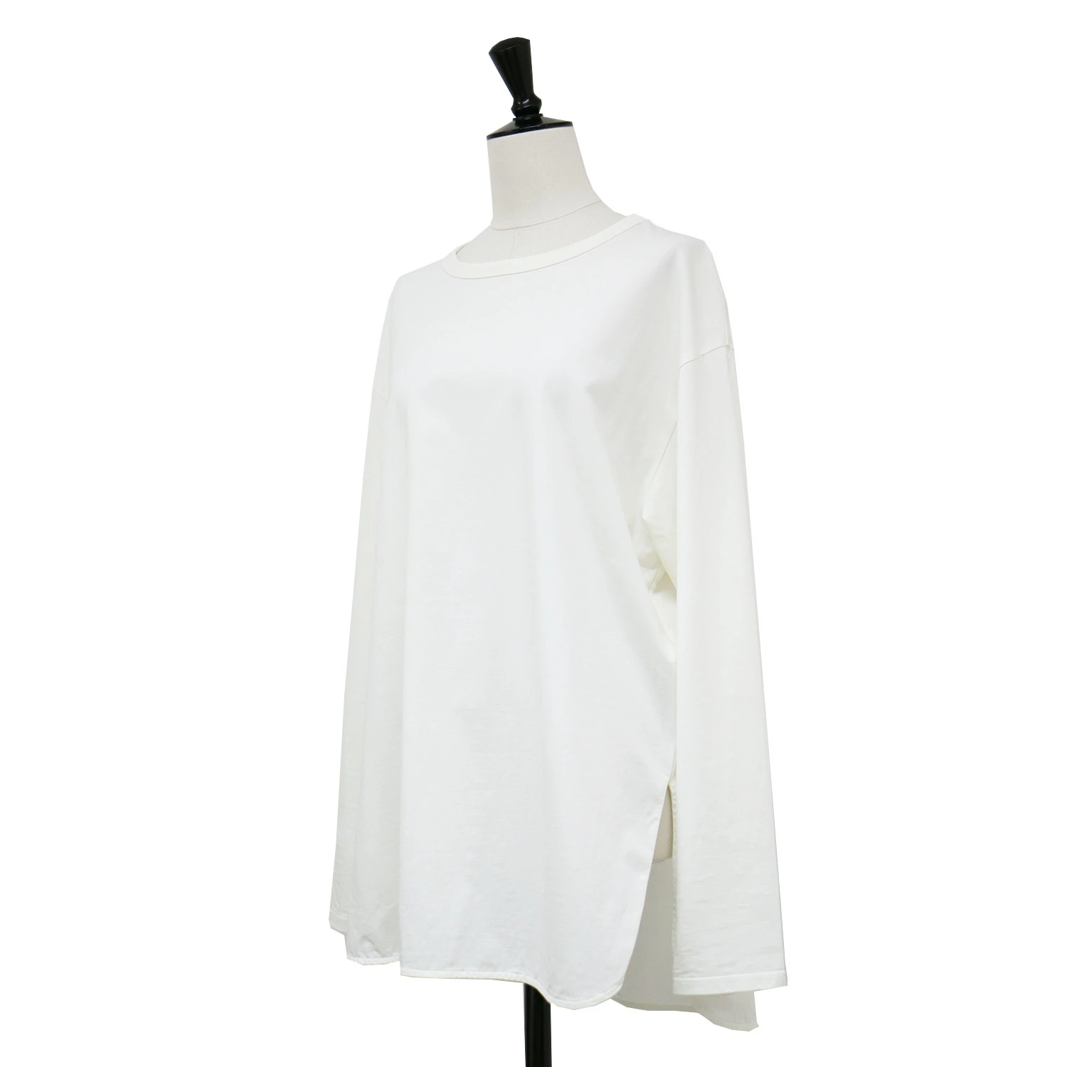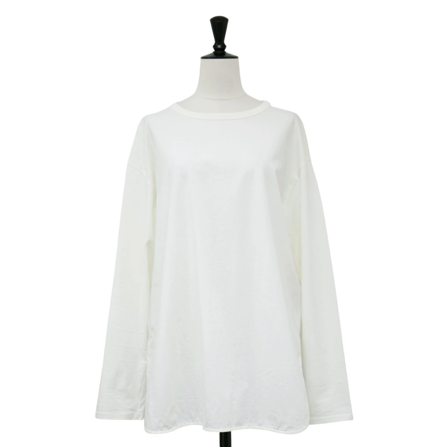 23ku T-shirt, white, size 44 (XL) / Spring/Summer 2025, cotton bare jersey long t-shirt / crew neck, long sleeves, solid color, shirt tail / top, cut and sewn, women's, pre-owned, item number K4619