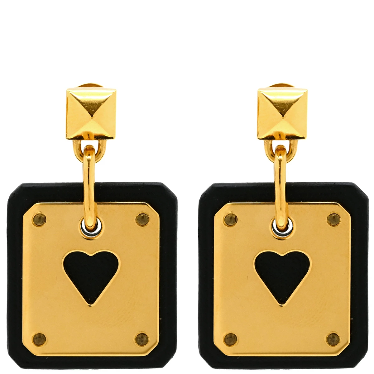 ▲クリックで拡大されますエルメス HERMES アス・ドゥ・クール ピアス ヴォースイフト メタル ブラックXゴールド エースオブハート 黒 Y刻印 レディース 【箱】定番 人気 美品 【中古】