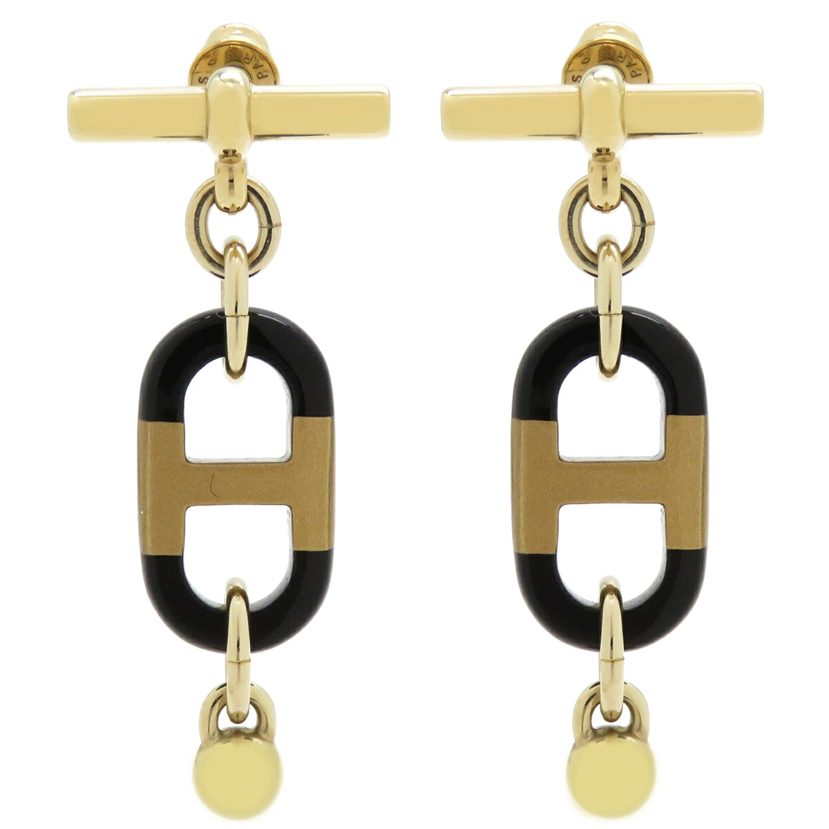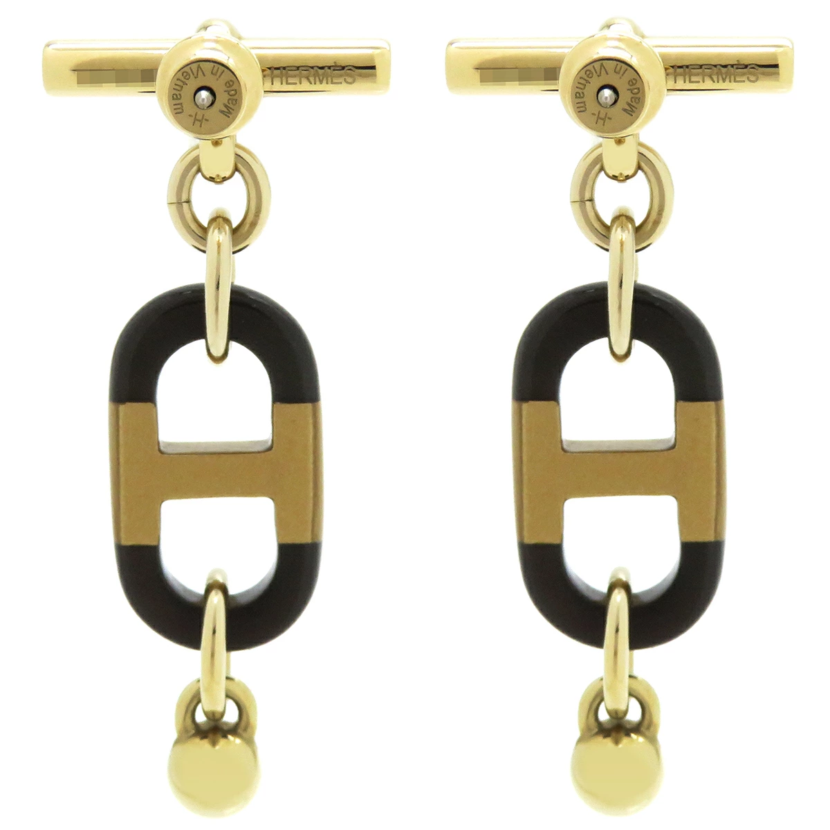 【【 エルメス HERMES ピアス シュル メールPM ポップアッシュ GP/バッファローホーン ベージュ×ブラック×ゴールドゴールド金具 - レディース【箱】 定番 人気 美品 【中古】】 【エルメス HERMES】【-】