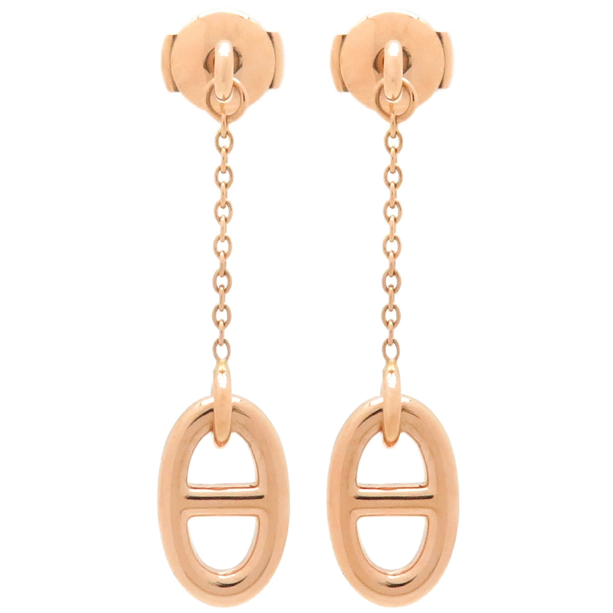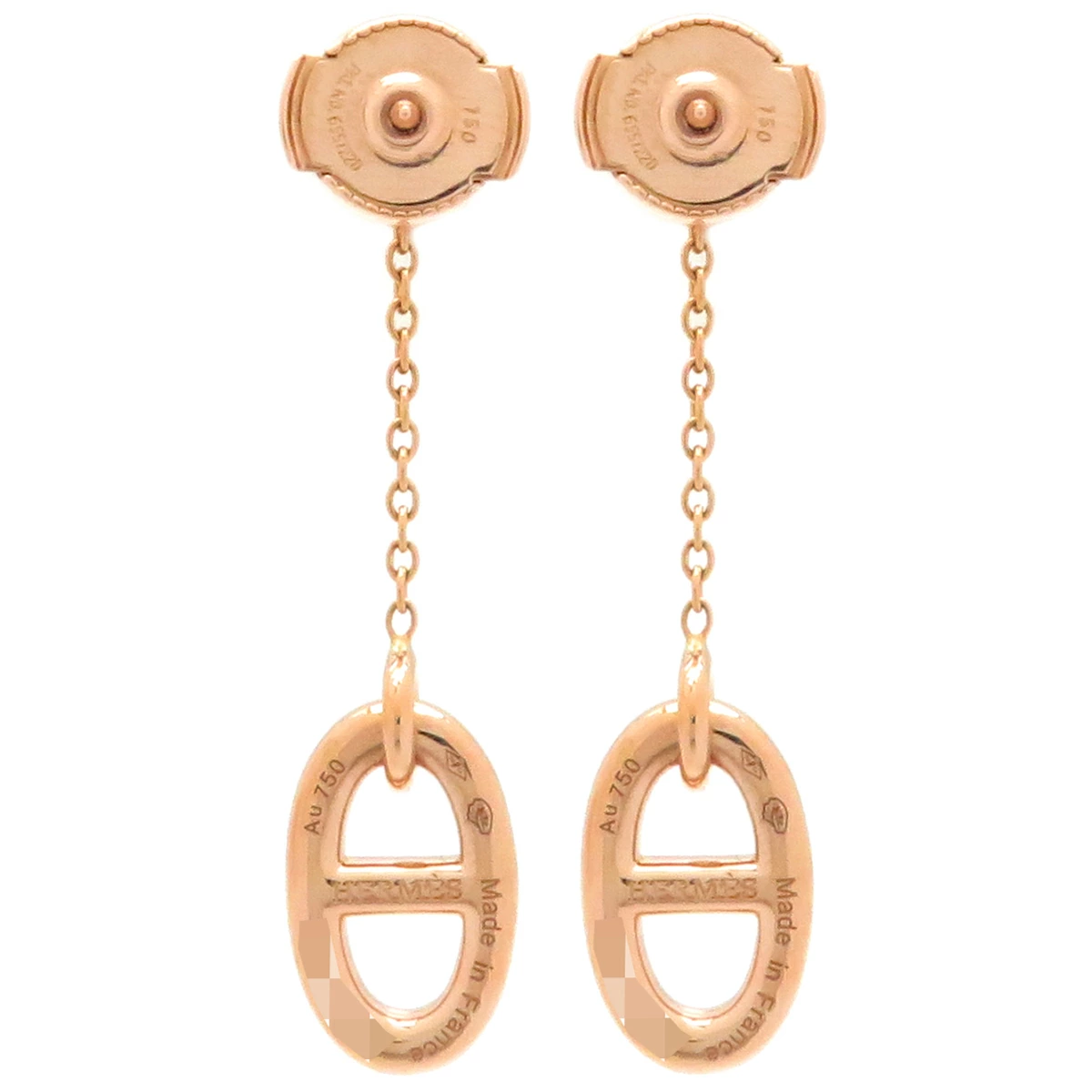 ▲クリックで拡大されますエルメス HERMES ファランドール PM シェーヌダンクル ピアス K18PG ローズゴールド ピンクゴールド ドロップピアス シェーヌダンクル 750 18K - レディース定番 人気 美品 【中古】