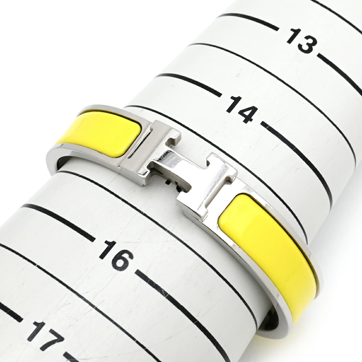 エルメス HERMES クリックH PM クリックH ブレスレット メタル エナメル イエロー×シルバー Hブレス シルバー金具 - レディース 【箱】 【中古】 管理コード240500513399 全体コンディション詳細: ご使用や保管により全体的に多少のダメージが見受けられるお品です。※画像、コメント欄参照 コンディション詳細:中古品 細かな擦れや小傷、打痕、エナメルに小傷がございます。