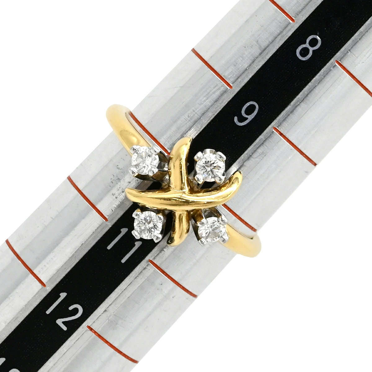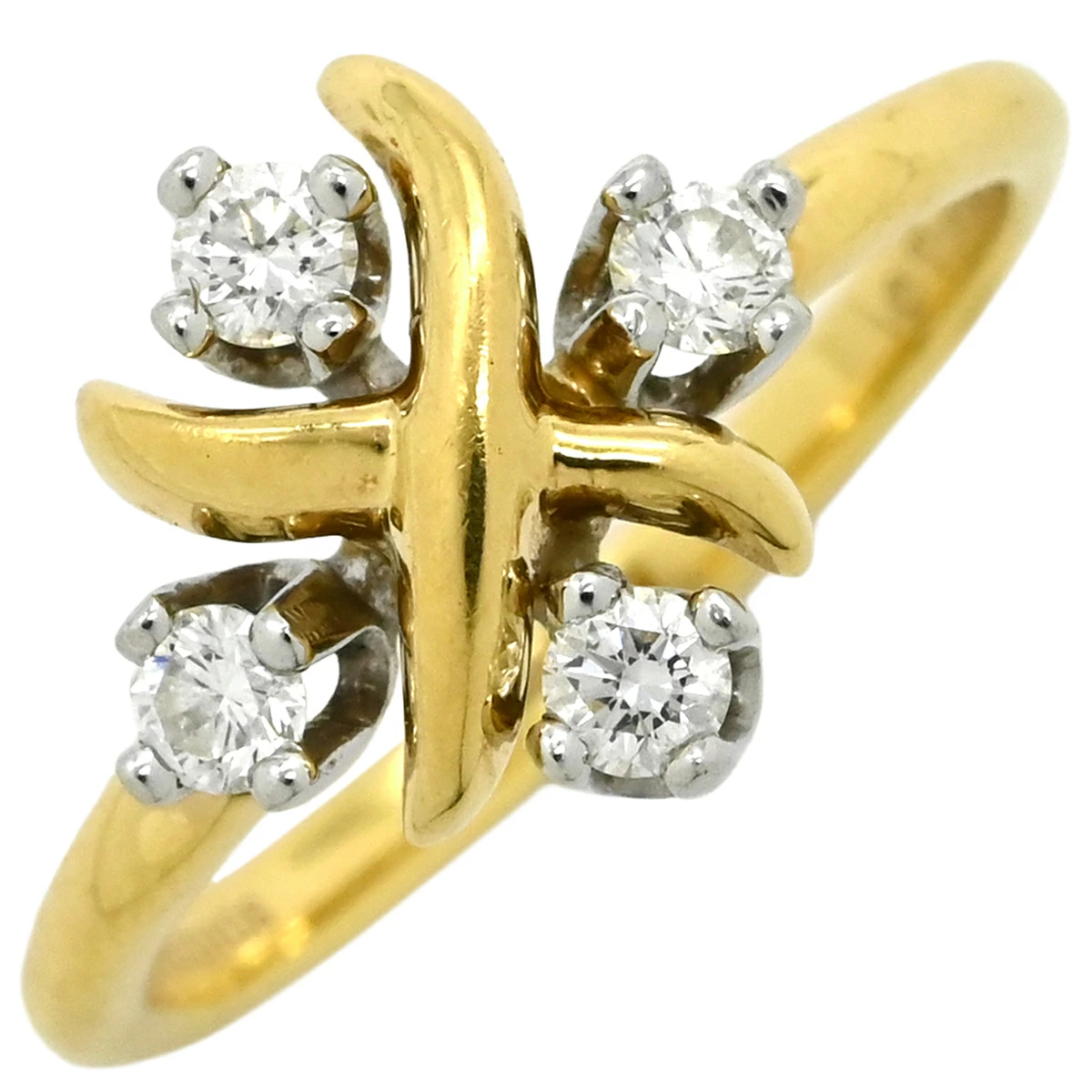 ティファニー Tiffany & Co リング 指輪 ジャン シュランバージェ K18YG Pt950 ダイヤモンド イエローゴールドXプラチナシルバー 4Pダイヤ 10号 レディース 【保存袋】定番 人気 美品 【中古】