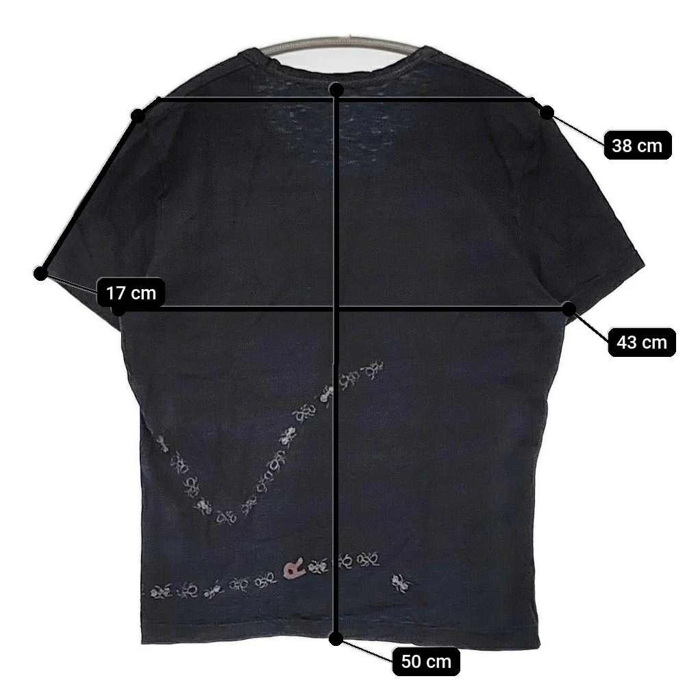 | 実寸サイズ | 肩幅:約38cm 着丈:約50cm 身幅:約43cm 袖丈:約17cm ※採寸画像がある商品はハンガーに吊るした状態での計測のため、平置きでの採寸とは差が生じる場合がございます。平置きでの実寸サイズをご希望の場合は、ご購入前に必ずご質問ください。 ※記載以外のサイズが合わないことを理由とした返品はできませんので、 記載部分以外で実寸サイズの気になる箇所があれば必ず購入前にご質問ください。 |
