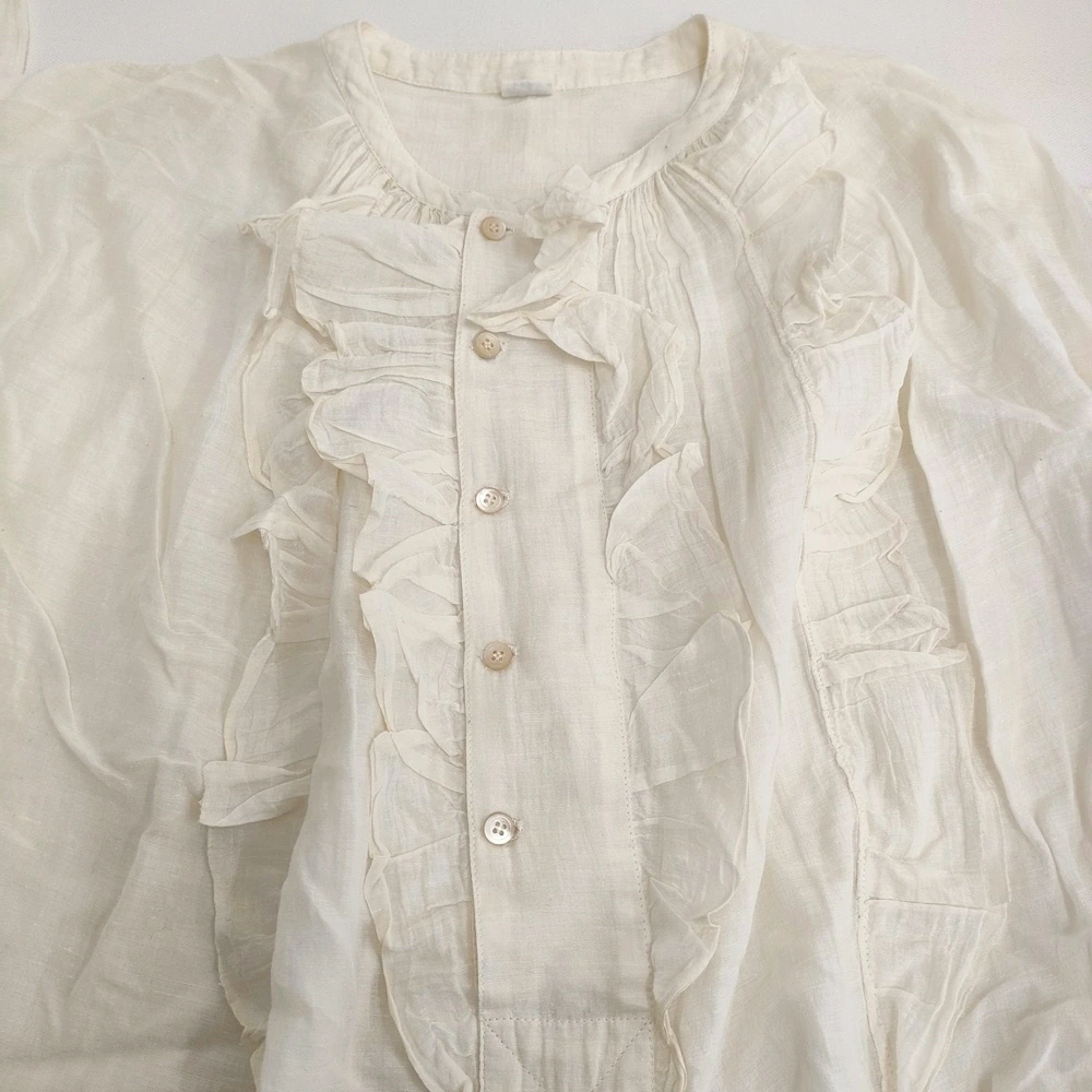 | アイテム | ブラウス シャツ インドタッサーカディのフリルブラウス 定価41800円 インド製 |