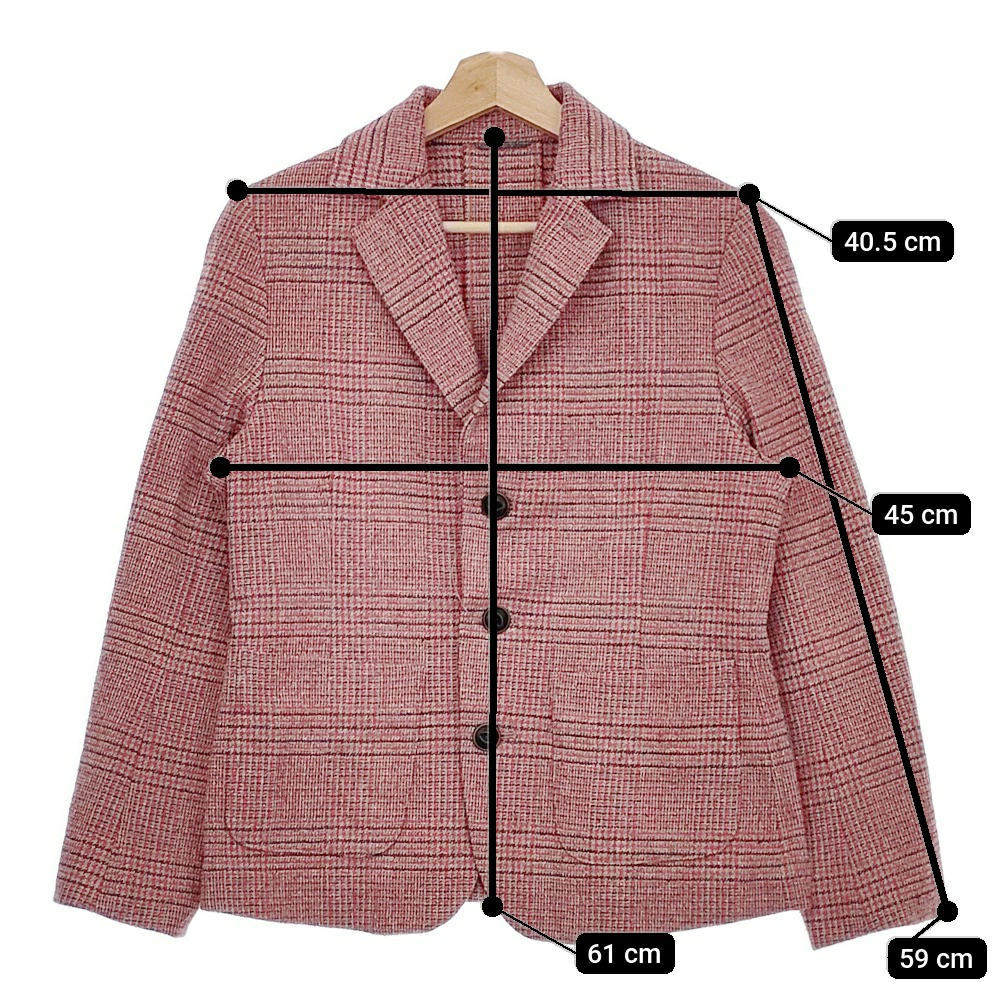 | 実寸サイズ | 肩幅:約40.5cm 着丈:約61cm 身幅:約45cm 袖丈:約59cm ※記載以外のサイズが合わないことを理由とした返品はできませんので、 記載部分以外で実寸サイズの気になる箇所があれば必ず購入前にご質問ください。 |