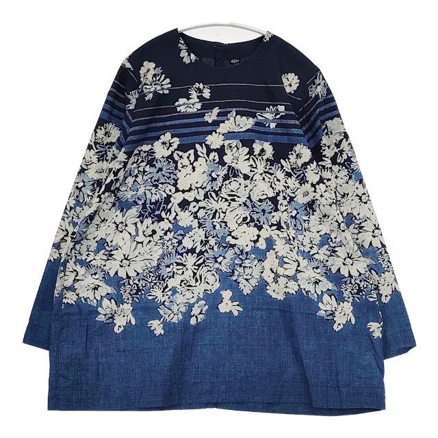 45R/45rpm Border Flower Print Blouse, Indigo, Navy, Women's, Original Price: ¥61,600, Pre-owned, Item Number: 6-0129M