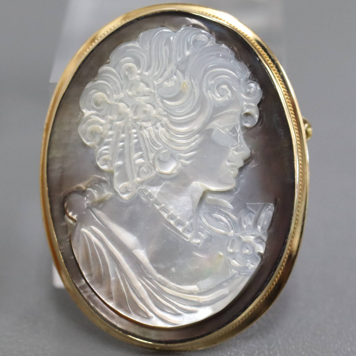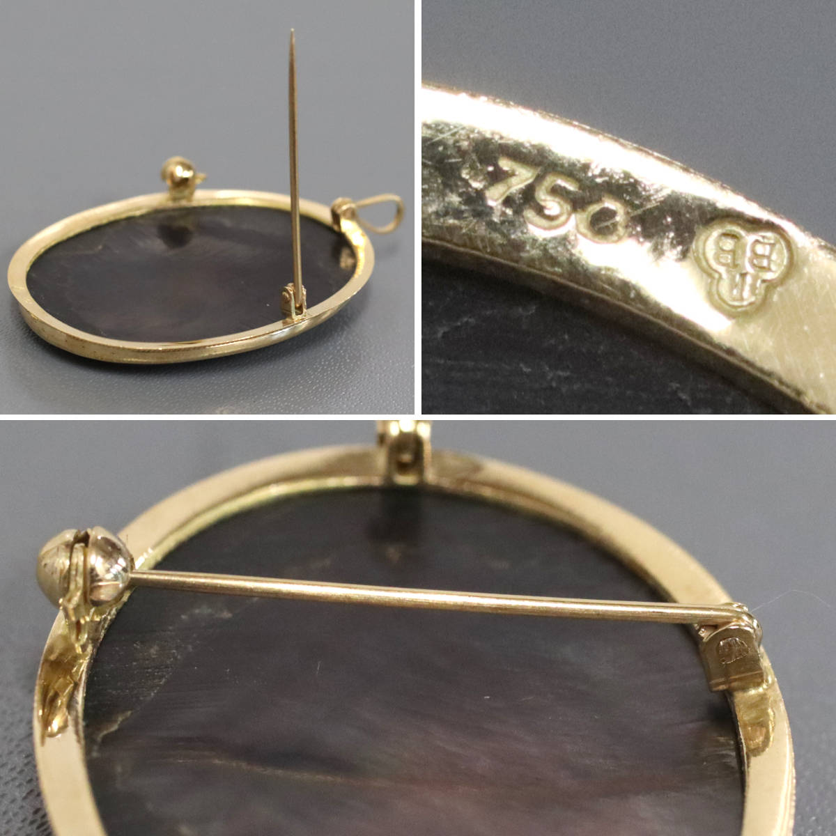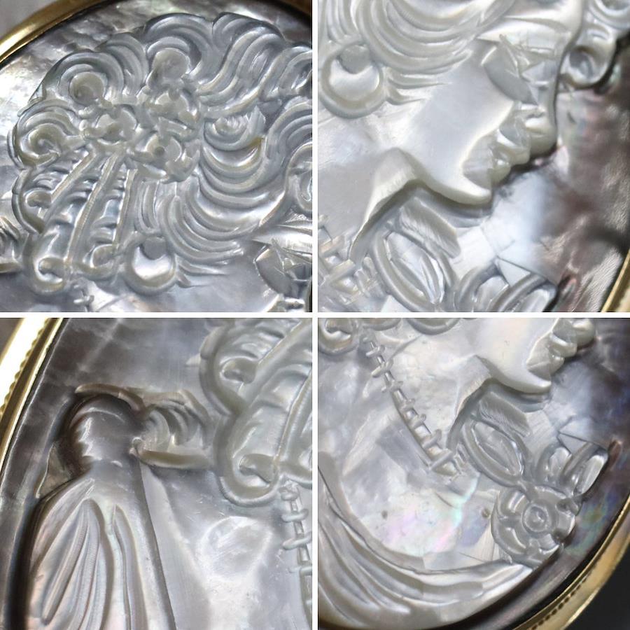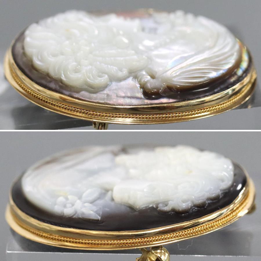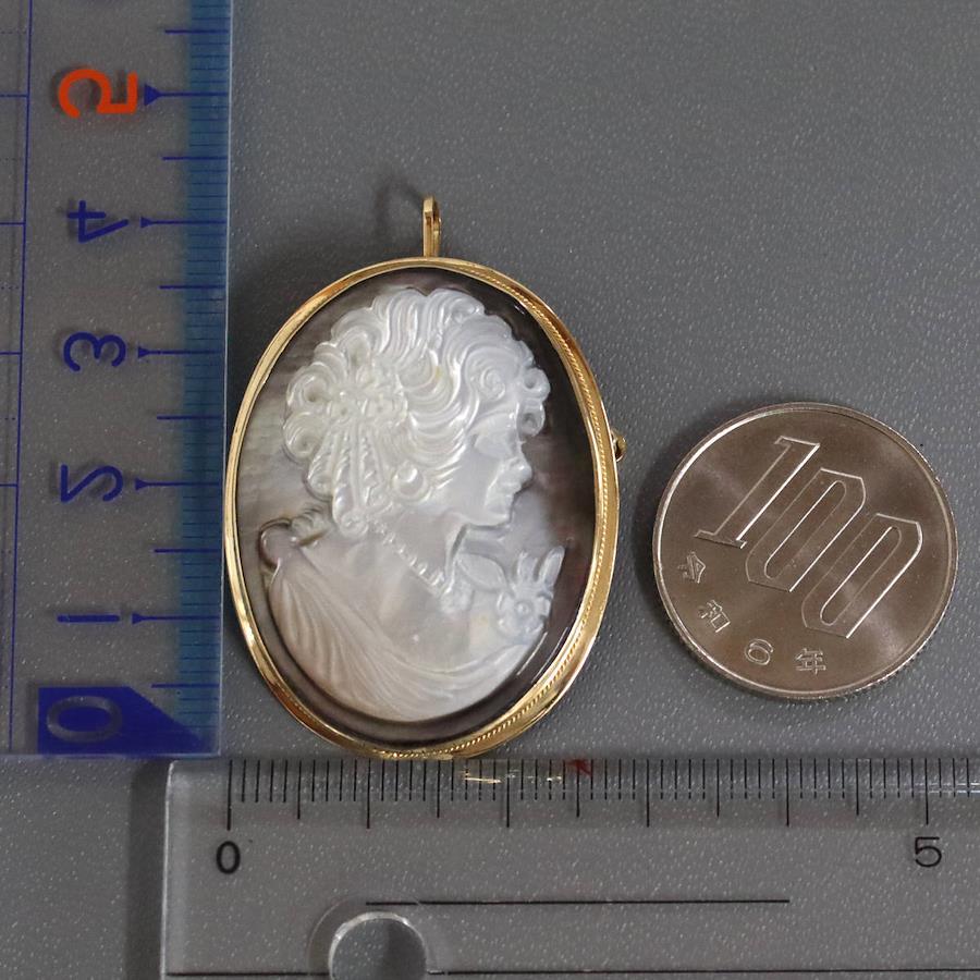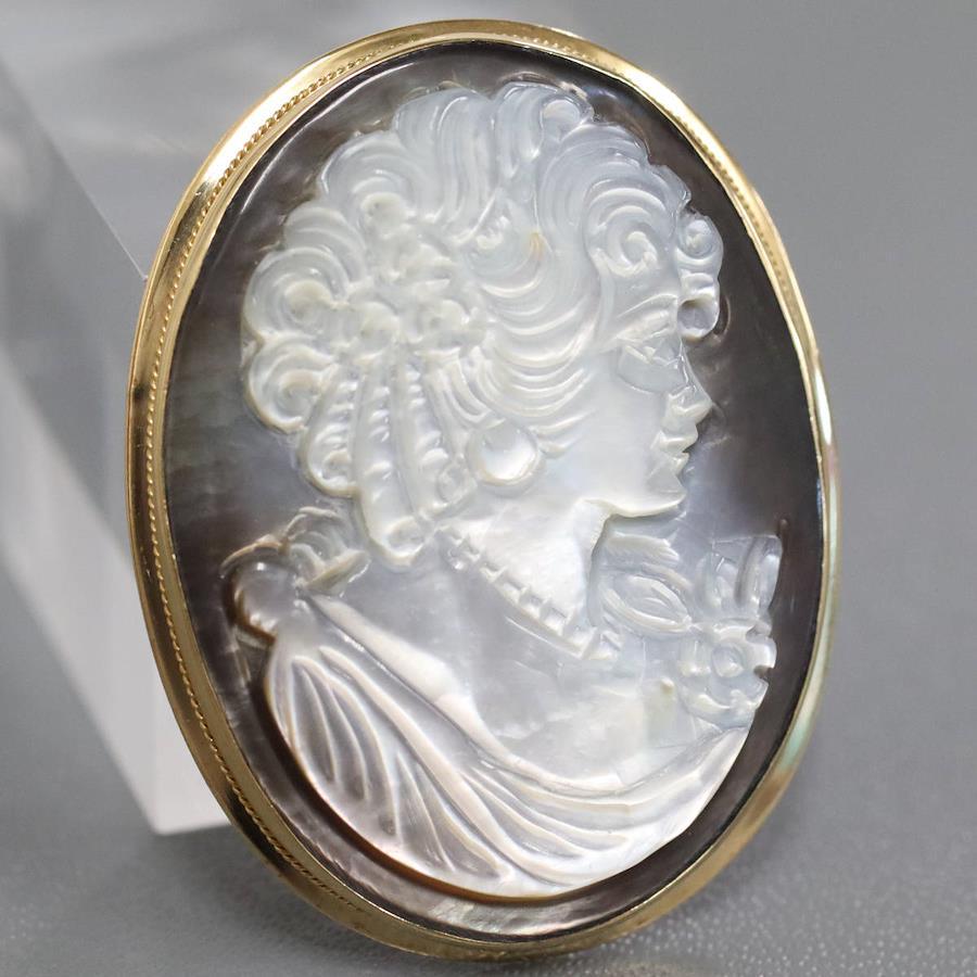 750シェルカメオペンダントトップ/ブローチの中古品です。立体的な女性の横顔が魅力的です。シェル カメオの表面には小傷があります。地金には小傷があります。+---+---+---+---+---+。{状態}AB{素材}750(K18YG),シェル,カメオ{サイズ}約W29mm × H37mm(バチカン含まず){その他}7.1g。{付属品}なし(サービス箱をお付けします){お問合せ商品番号}25086040+---+---+---+---+---+。