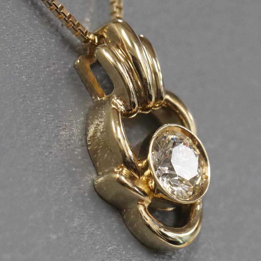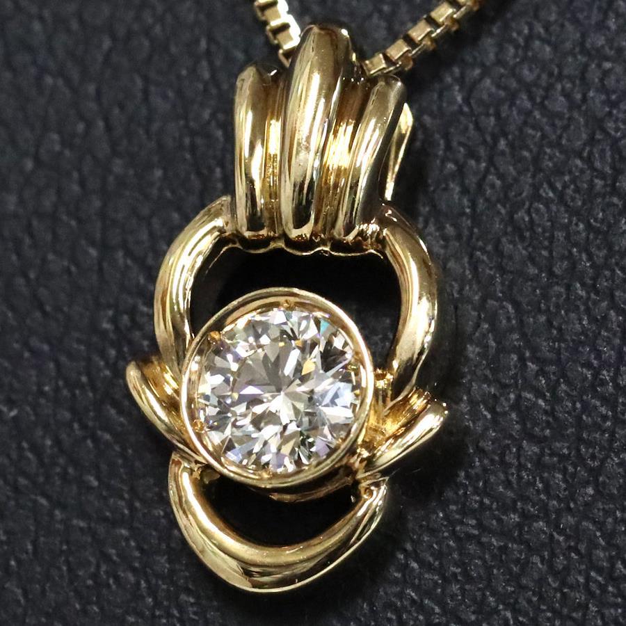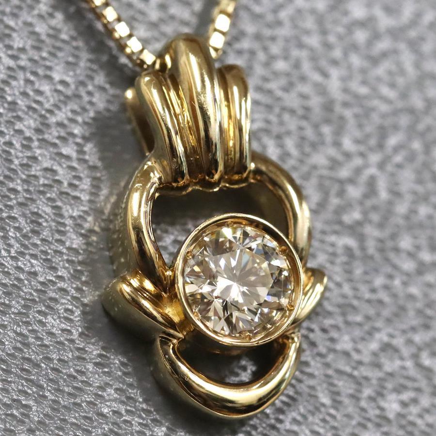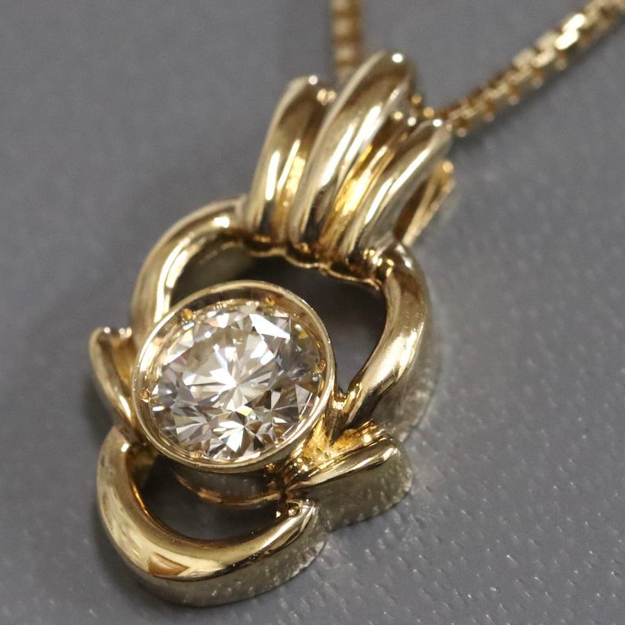 750/K18ダイヤモンドペンダントの中古品です。照りよく輝く良質なダイヤモンドがセットされています。ダイヤモンドはわずかに黄色がかった色味ですが、インクルージョンが非常に少ないです。地金にはわずかに小傷があります。+---+---+---+---+---+。{状態}A{素材}トップK18YG,ダイヤモンドチェーン750(K18YG){サイズ}トップ約W10mm × H16mm。チェーン長約44cm。{その他}D0.34ct,4.3g。{付属品}なし(サービス箱をお付けします){お問合せ商品番号}25093024+---+---+---+---+---+。