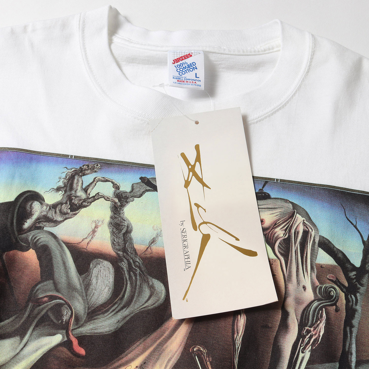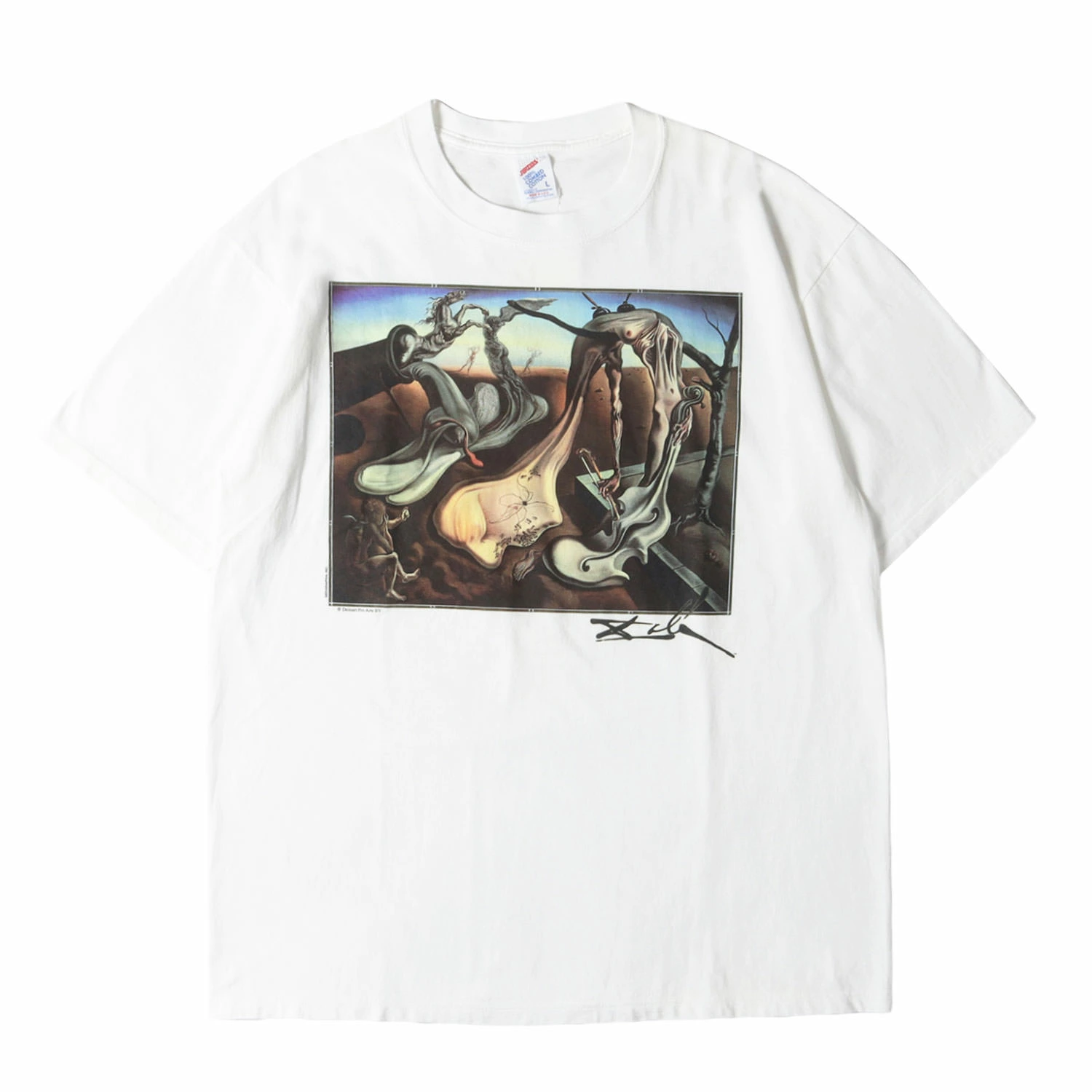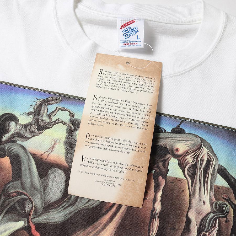スペインの画家、サルバドール・ダリ。ありえないモチーフの組み合わせで非現実な絵画を作り上げるシュルレアリスムの代表作家です。そんな彼の作品を落とし込んだ希少なアートプリントTシャツとなります。