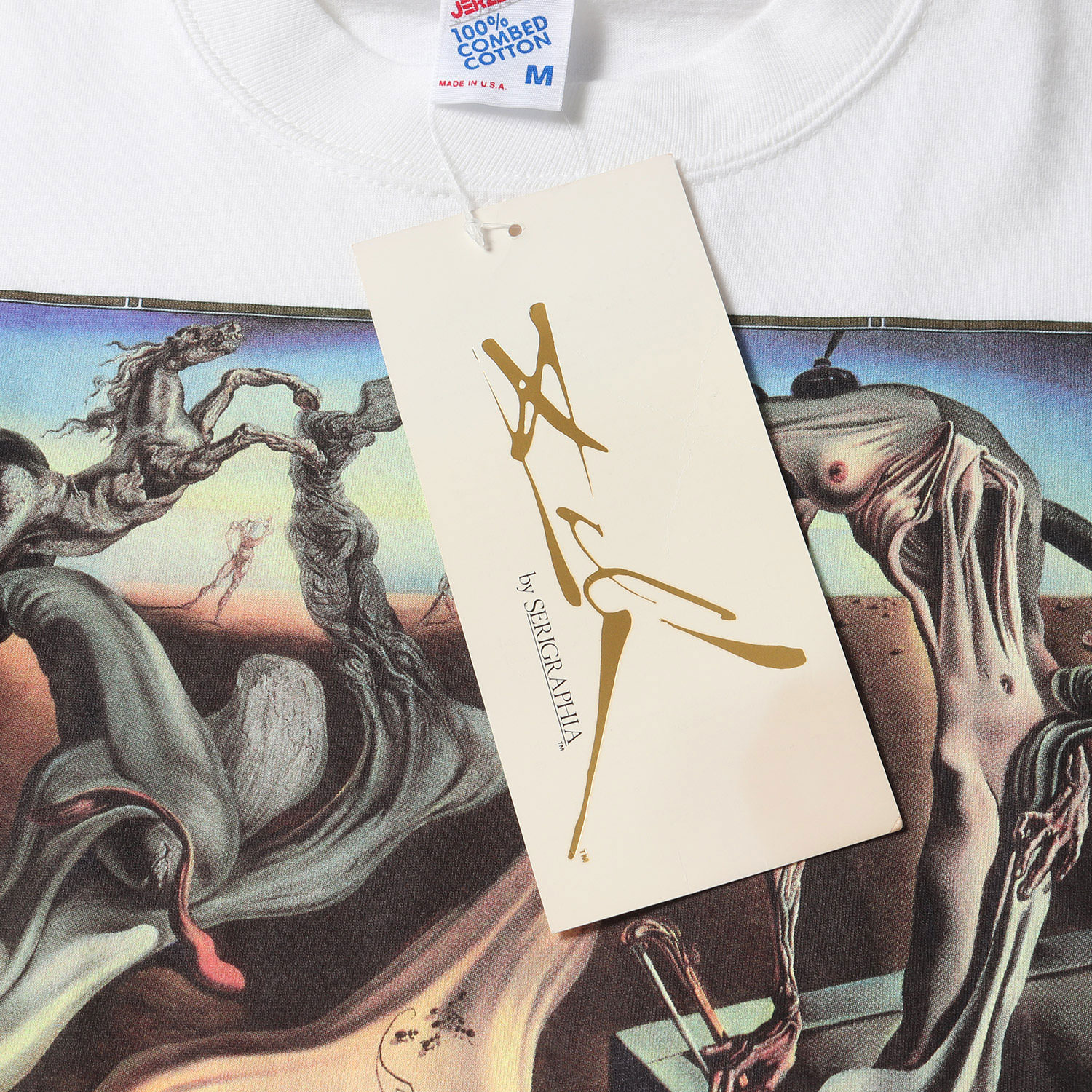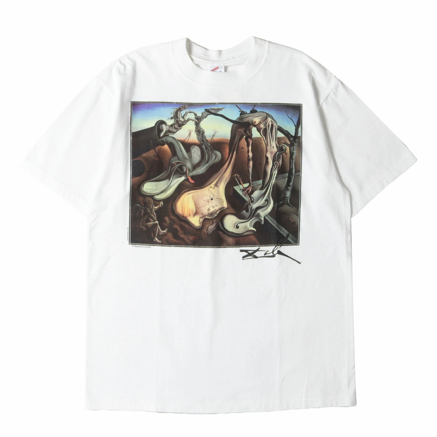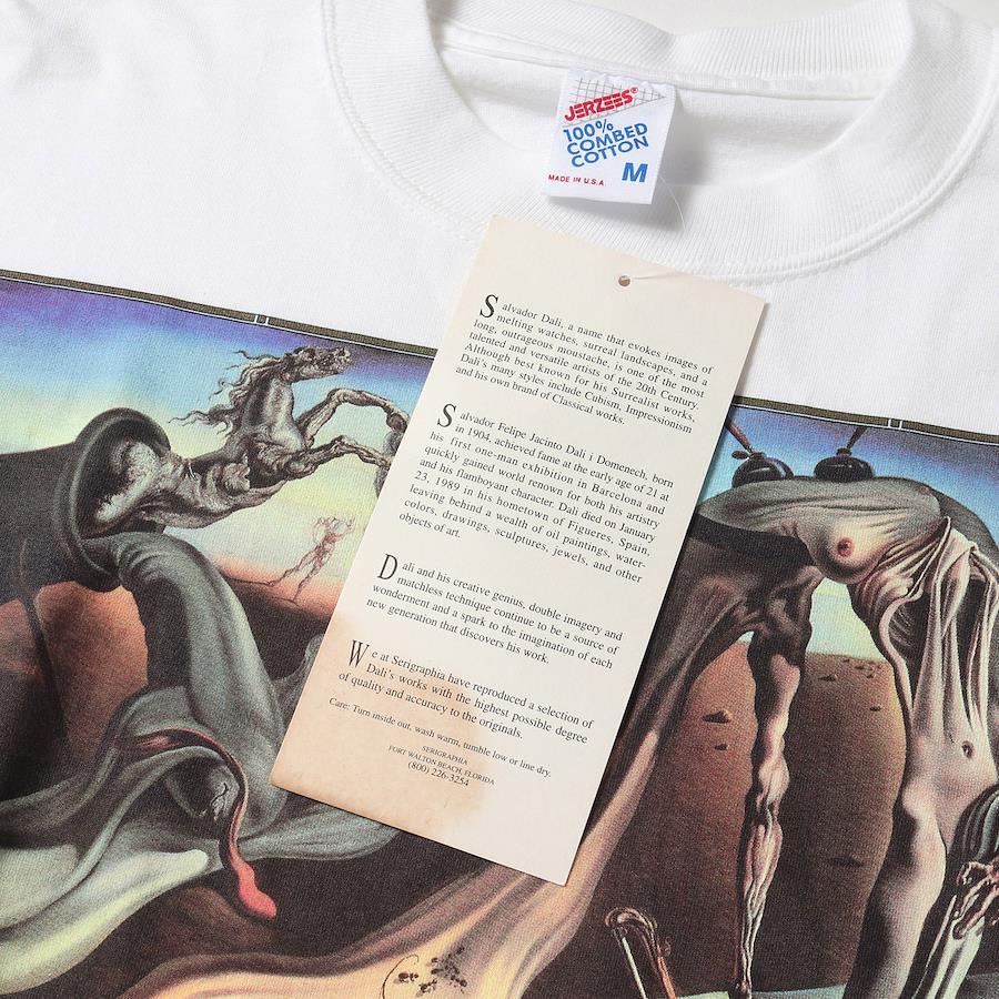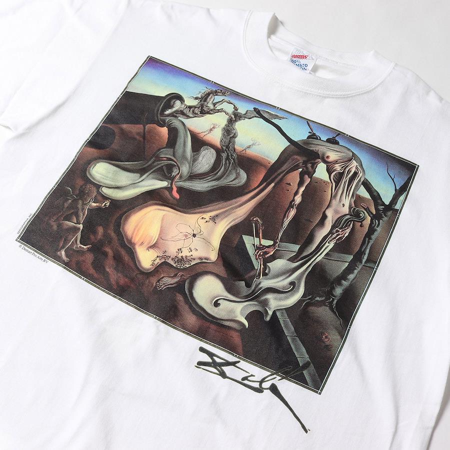 スペインの画家、サルバドール・ダリ。ありえないモチーフの組み合わせで非現実な絵画を作り上げるシュルレアリスムの代表作家です。そんな彼の作品を落とし込んだ希少なアートプリントTシャツとなります。