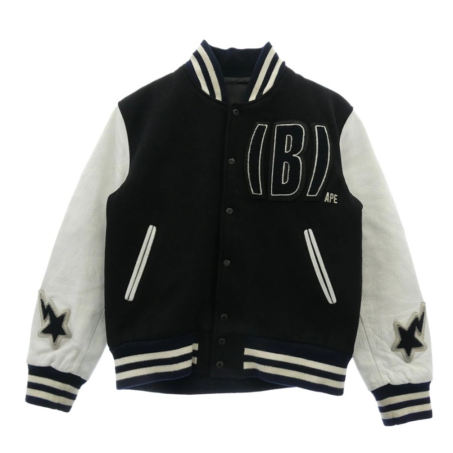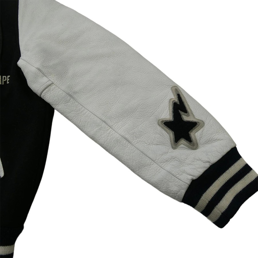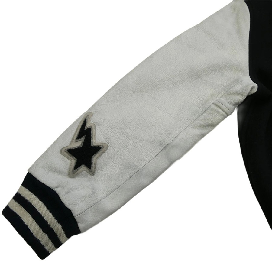 | 商品名 | Cowhide Varsity jacket 牛革 袖 レザー BAPSTA B ワッペン スタジャン バーシティジャケット ブラック |