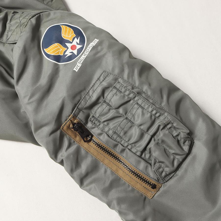 | 商品説明 | バックに大きなグラフィックプリントをあしらったヘビーナイロンツイル生地のL-2Bフライトジャケットです。こちらは”THE REAL McCOY'S”社のボディを使用した本格的な一枚になります。 |