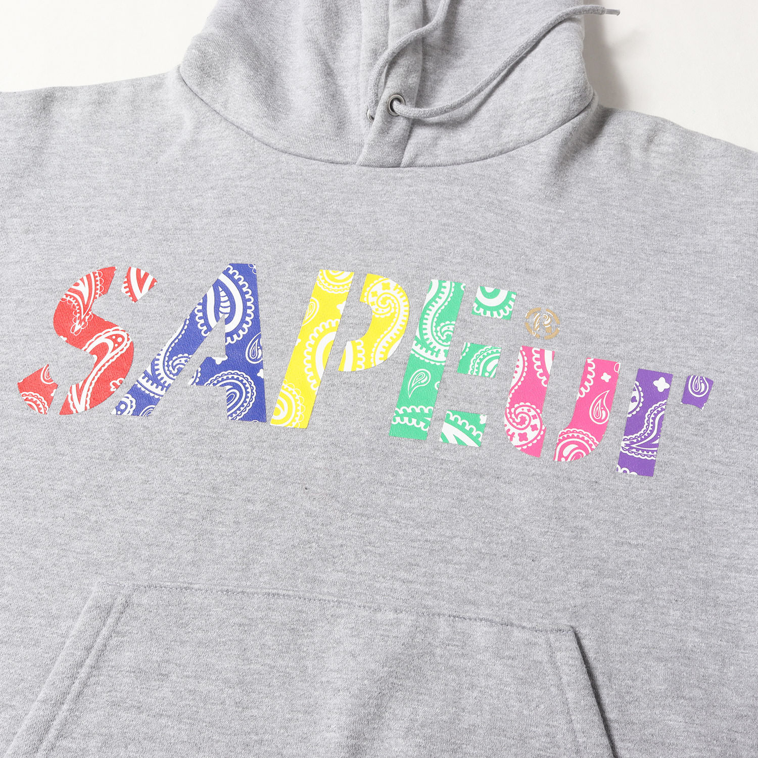 - マルチカラーのバンダナ柄ブランドロゴを両面にあしらったスウェットパーカーになります。