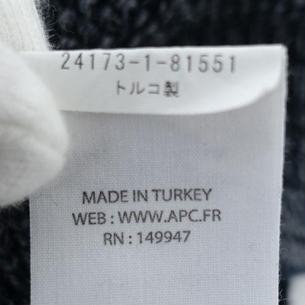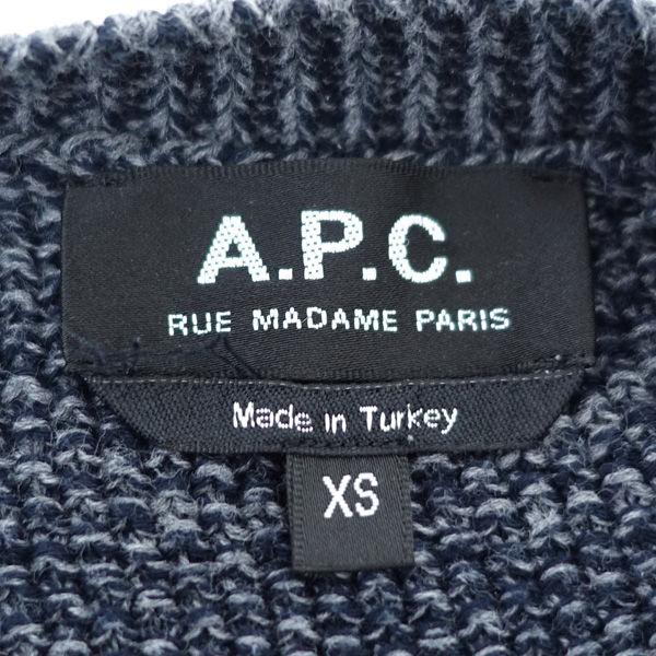 ・メーカー :A.P.C. / アーペーセー・製品型番 :1110321・サイズ :表記サイズ:XS,肩幅 (約cm):44,身幅 (約cm):43,着丈 (約cm):62,袖丈 (約cm):70,・色(柄)の系統:ネイビー・デザイン :(メンズ)トップス/ニット・セーター 古着・素材 :綿100%