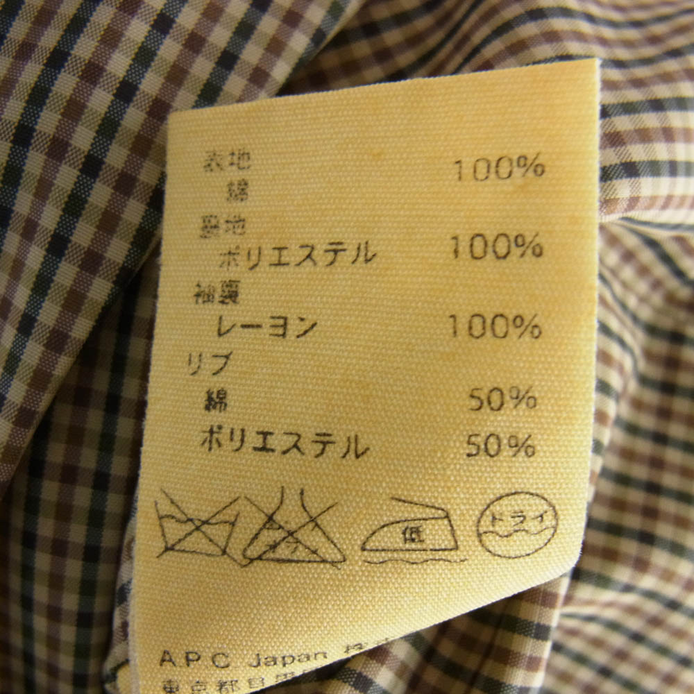 A.P.C. RUE MADAME PARIS Check lining Blouson Flight Bomber Jacket Khaki XS [Used]