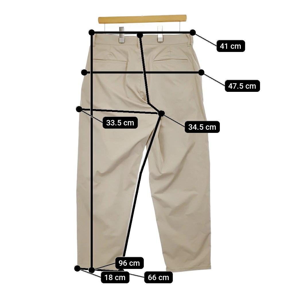 | 実寸サイズ | 総丈:約96cm ウエスト:約41cm 股上:約34.5cm 股下:約66cm ヒップ:約47.5cm ワタリ幅:約33.5cm 裾幅:約18cm ※記載以外のサイズが合わないことを理由とした返品はできませんので、 記載部分以外で実寸サイズの気になる箇所があれば必ず購入前にご質問ください。 |