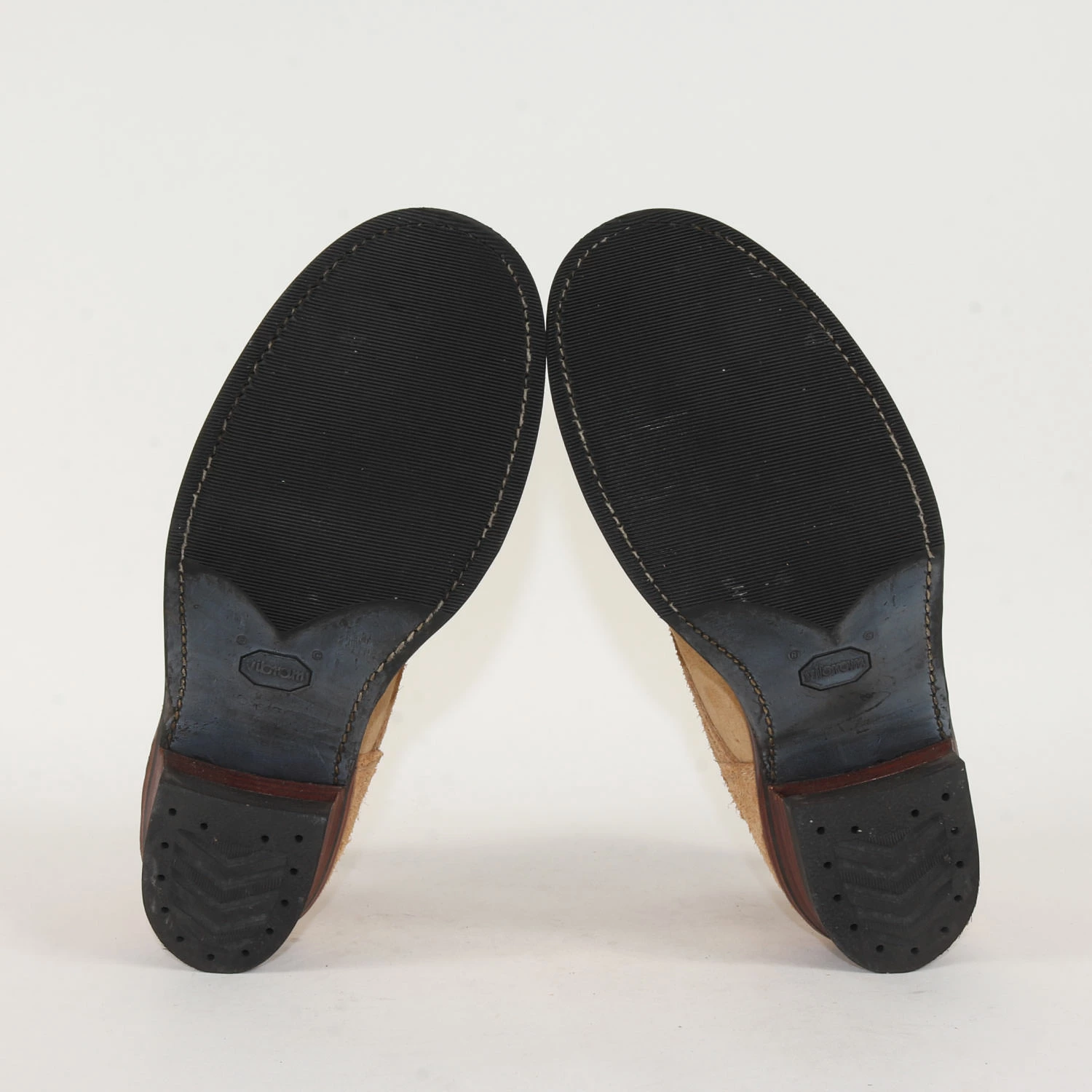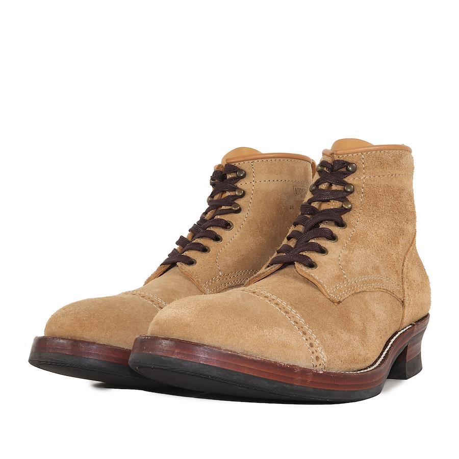 | 商品説明 | ・ストレートチップで仕上げたカスタムオーダー品 ・1940年代の“米軍 M-43 サービスシューズ”モチーフ ・北米産ステアハイドスウェードレザー ・ADDICT BOOTSの木型の中で最も薄いつま先を持つCL LASTのローヒールバージョン“CL-LW LAS”ラスト ・先芯なしのクラシックなフォルム ・レザーライニング仕様 ・グッドイヤーウェルテッド製法 ・VIBRAM#700ソール ・ウェルトシングルステッチ |