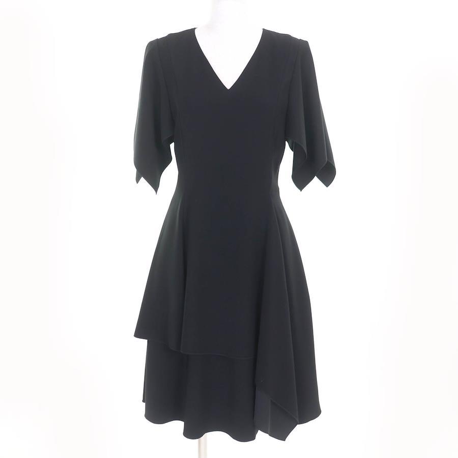 ADEAM Dress, Side Zip, V-Neck, Short Sleeve, Black, Polyester, 41196